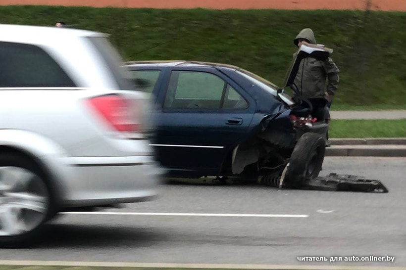 — Я специально приехал на работу пораньше, чтобы найти парковочное место поближе к офису: хотел коллег угостить, поэтому в багажнике стояли пакеты с угощениями, фруктами и т. д. На Домашевскую я приехал примерно в 8:40, стал парковаться. И вдруг в зеркале увидел, что сзади на приличной скорости несется BMW. Следующая секунда — удар, и мою Peugeot выбрасывает на тротуар. Несколько раз развернувшись, машина задела столб передней частью и снова оказалась на дороге. Пролетел метров 200 в общей сложности. А водитель BMW скрылся с места ДТП, несмотря на то, что у него было кривое колесо, он потерял фару. Я вызвал ГАИ, и, когда они приехали, сообщили, что BMW найден на улице Волоха. У него сняты номерные знаки, водитель скрылся, — рассказал корреспонденту Onliner водитель Peugeot.