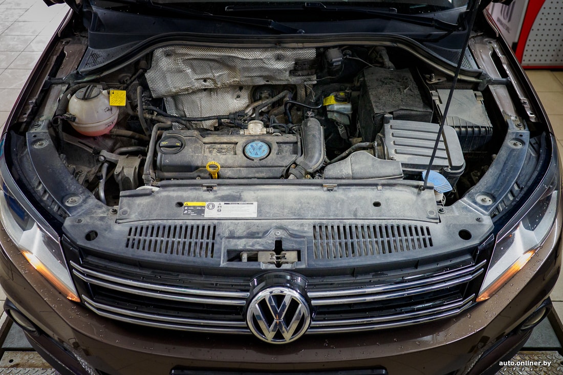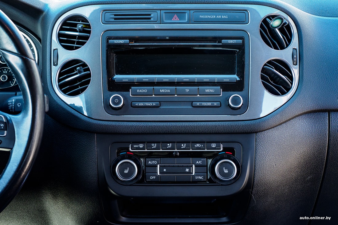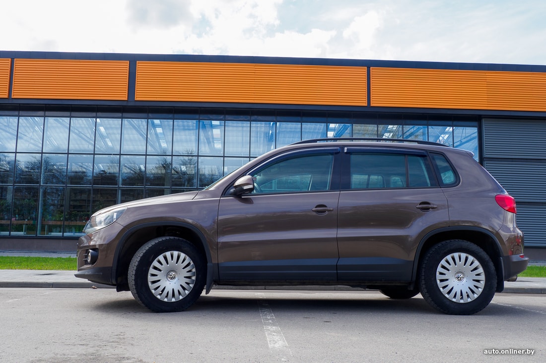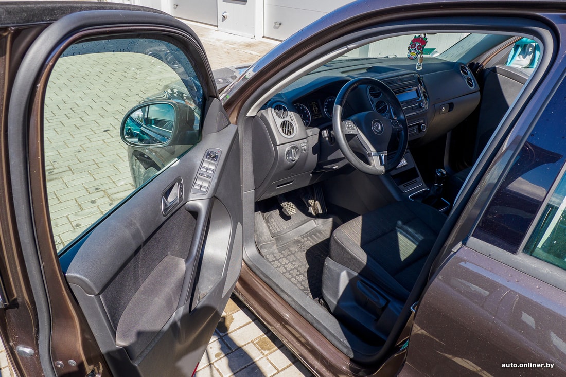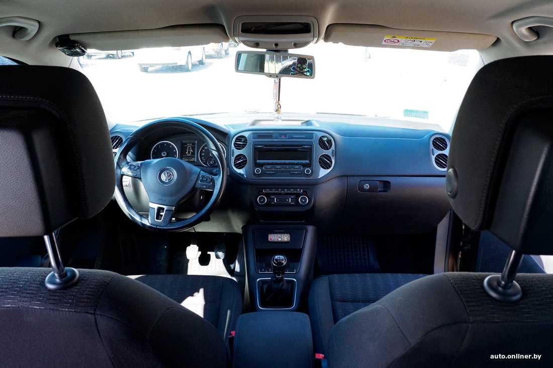 На одометре Volkswagen — честные 113 тыс. км. По словам владельца, основной пробег — по Гродненской области. Сам Владислав живет в пригороде, на работу в облцентр ездит по трассе, 60% всех поездок — именно загород. Расход — 6,5—7 литров на сотню при скорости 90—100 км/ч, в городе уходит примерно 9,5—10 литров. В семье есть несколько авто, но сейчас остро встал жилищный вопрос — потому Tiguan и выставлен на продажу. Покупали машину в декабре 2014 году у дилера, оформлена на физлицо. Мотор — 1,4 литра (бензин), механическая коробка, передний привод. Просят $11 500, или 29 105 рублей.