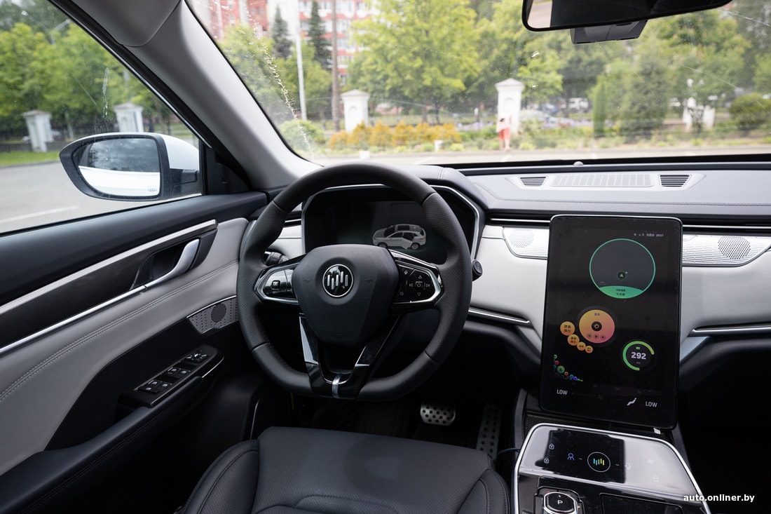 Под полом кроссовера расположена батарея емкостью около полусотни кВт·ч. Одного заряда хватает примерно на 350—400 реальных километров.