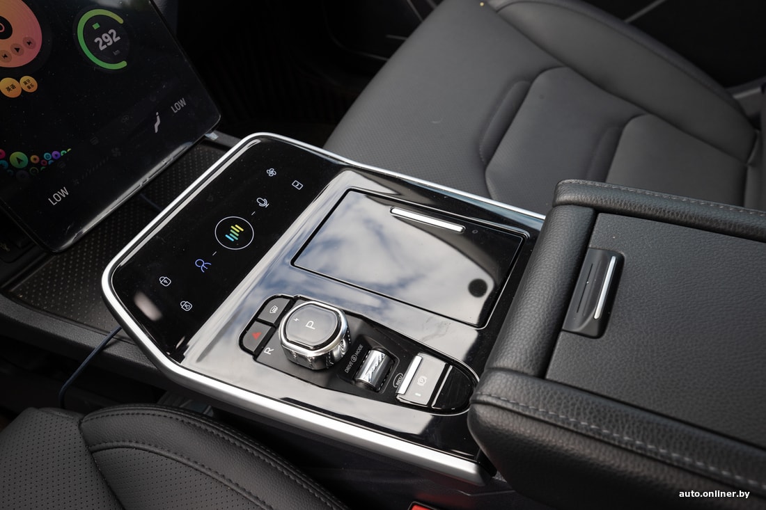 В салоне есть несколько физических клавиш, хотя основное управление функциями машины находится по ту сторону большого сенсорного экрана. Любопытно, что дисплей бортовой системы вращается — он может быть как с горизонтальной, так и с вертикальной ориентацией. Прямо как в настоящих планшетах! Правда, с началом движения (когда переводишь селектор в D) экран автоматически принимает вертикальное положение. Важно, чтобы на пути его вращения в этот момент не находились какие-либо предметы.
