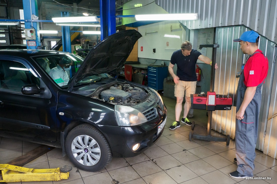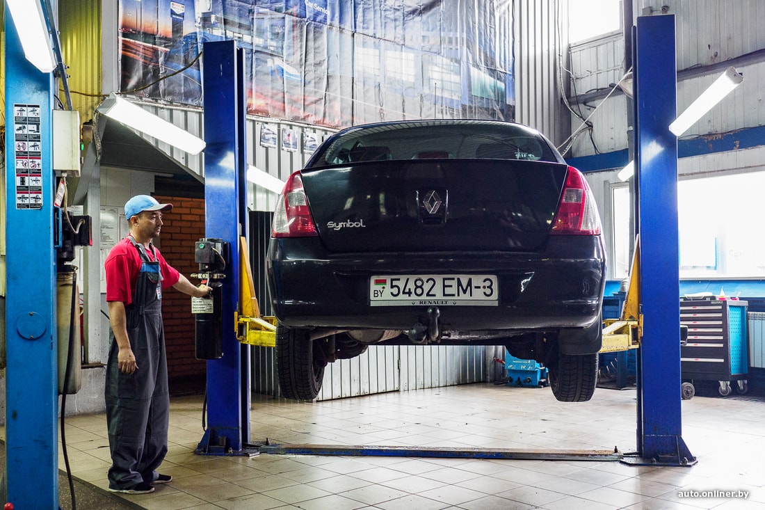 На парковку перед станцией диагностики подъехал черный рестайлинговый Renault Symbol I 2007 г. в. с пробегом в 124 000 км. В движение машину приводит 1,4-литровый бензиновый двигатель (75 л. с.), работающий в паре с механической коробкой передач. Цена — $4000, или 10 170 рублей. Как обещается, небольшая скидка вполне реальна.