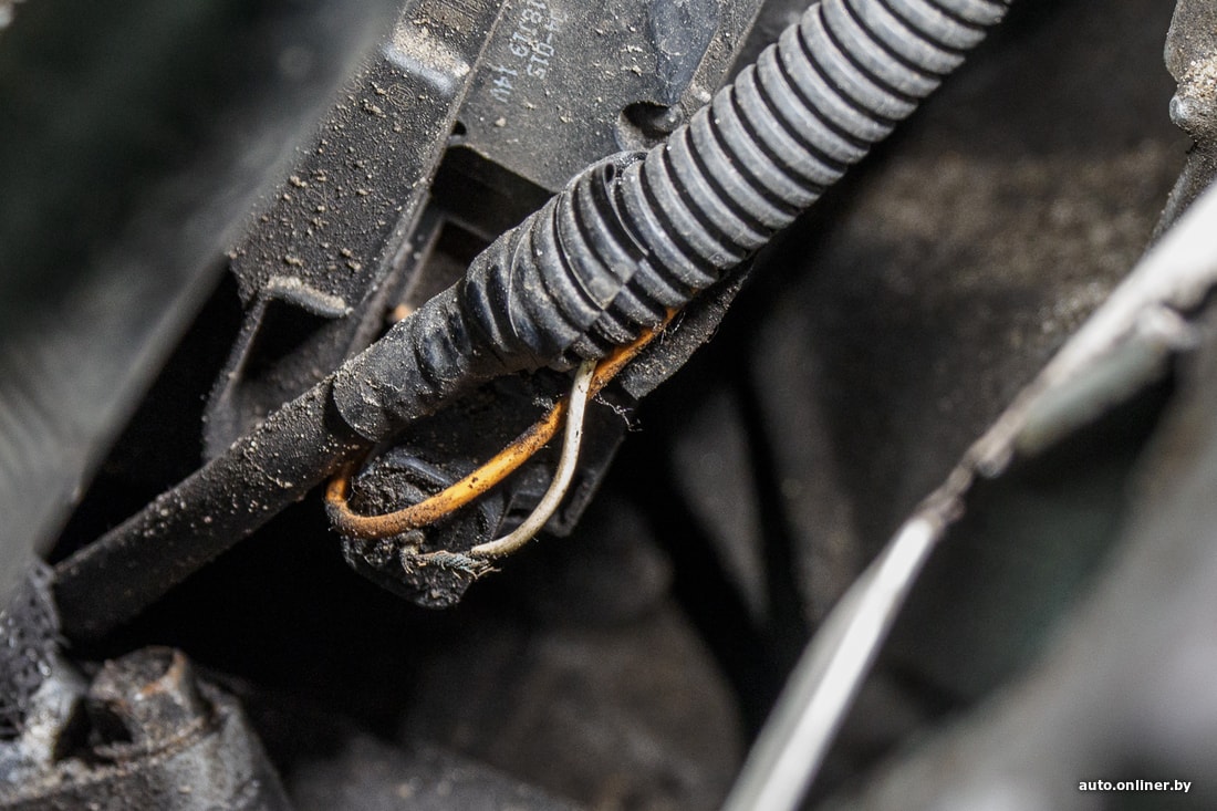 — «Подъетую» резину на задних колесах (на самом деле перекинул ее с передних). А под капотом обнаружат отсутствие патрубка воздушного фильтра. Объясню: произошло залипание оборотов. Многие видят причину в тросике газа. На самом деле это связано с датчиком холостого хода. Когда к нему пытались подлезть, матерчатая гофра раскрутилась. На днях этот патрубок мне должны привезти. Еще могут заметить неровные зазоры на крышке багажника — остались после замены лампочек в фонаре. Еще один нюанс — разводы на крыше в салоне. Это последствия протекания по антенне.