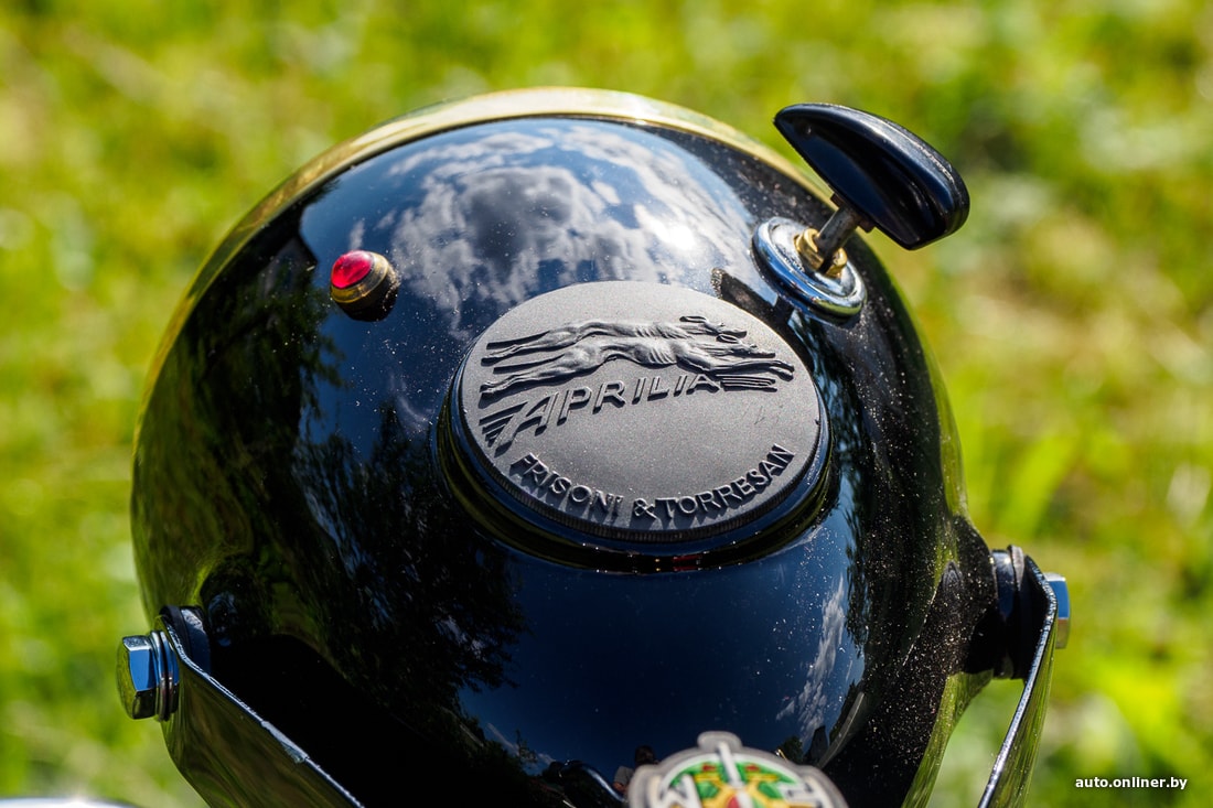 — На этом образце есть лейбл и другой знаменитой фирмы — Aprilia. Он размещен на крышке-заглушке на месте спидометра. Да, в те годы спидометр был опцией. Так вот Aprilia начинала не как мотопроизводитель — она делала фары, переключатели, ручки и прочую мелочь для мотоциклов и мопедов.