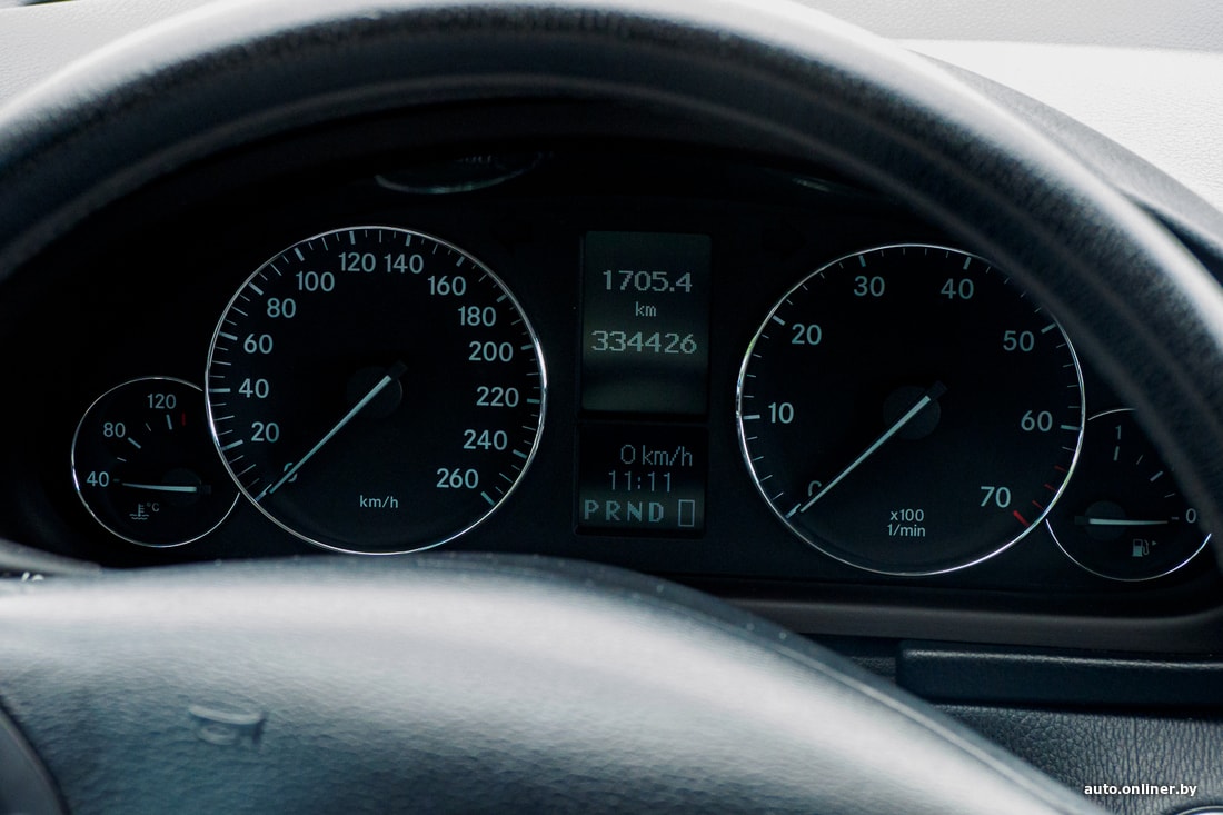 Пробег в 330 тысяч км может кого-то впечатлить. Тем не менее автомобиль выглядит вполне живым. «И на самом деле таковым является, — убеждает продавец. — Буквально недавно смотрел объявление „конкурента“: указан пробег в 230 тысяч, а руль и педали потерты, сиденья засалены, от машины уже ничего не осталось, короче говоря. И тут возникает вопрос: а на самом ли деле там двести тысяч? В случае с моим Mercedes все прозрачно — пробег немалый, но такой, как есть, без откручивания».