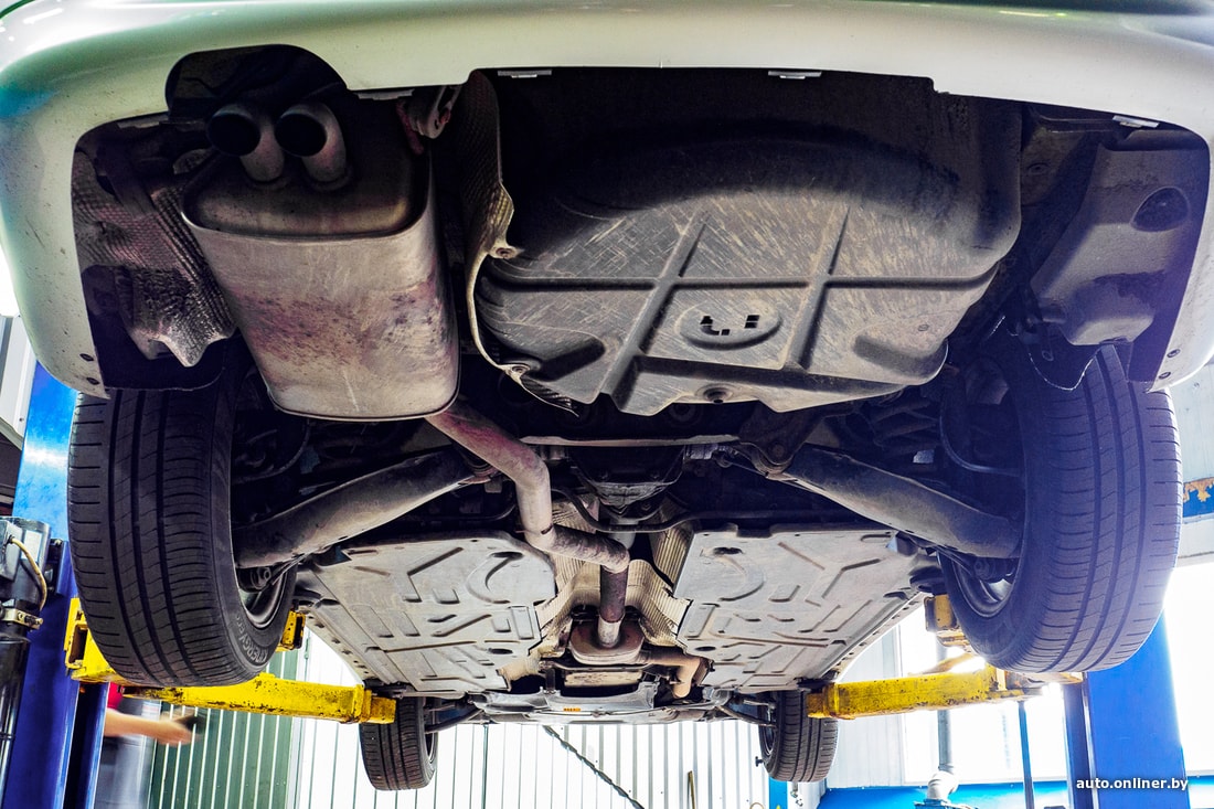 Обнаружено запотевание сальника правой полуоси. Крепление тепловой защиты глушителя оторвано.