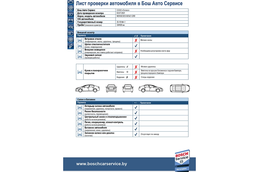 За время нашей беседы специалисты «Бош Авто Сервис» уже подготовили чек-лист с перечнем всех найденных нюансов. Приводим слова мастеров: