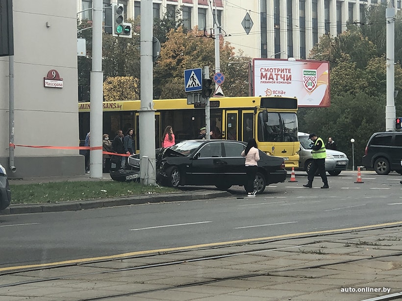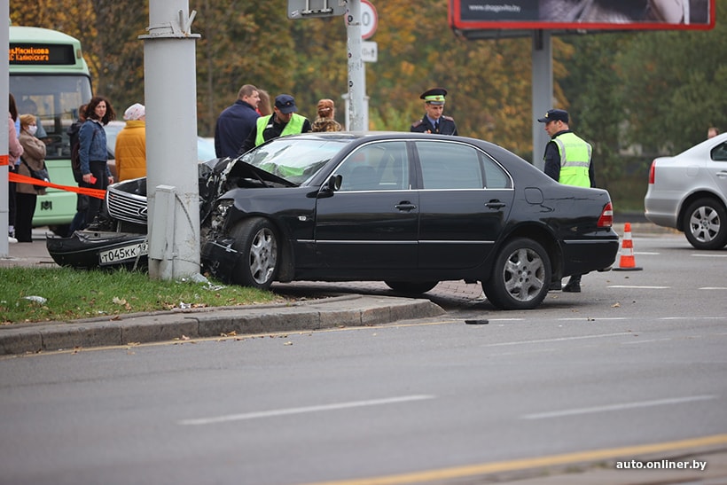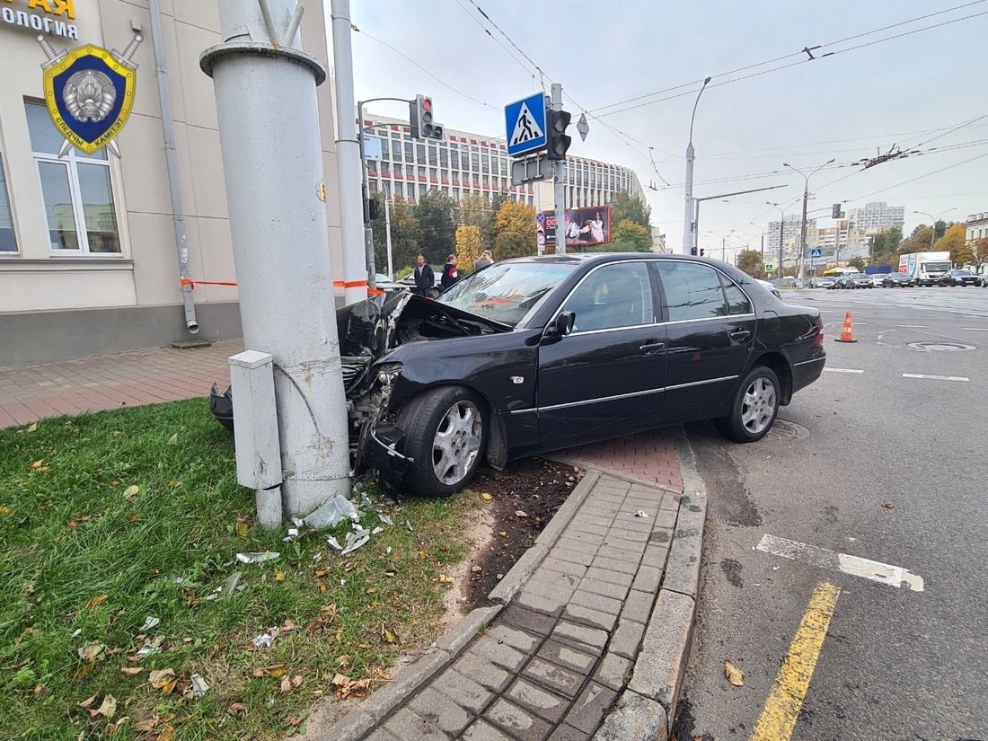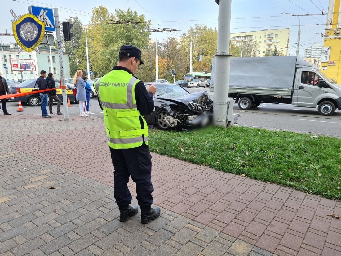 «49-летний водитель Lexus двигался по пр. Машерова в Минске, — такова официальная информация о произошедшем от СК. — Проезжая вблизи дома №9 по пр. Машерова (на перекрестке с ул. Куйбышева), он не справился с управлением, выехал за пределы проезжей части и совершил наезд на пешеходов, которые ожидали на тротуаре разрешающий сигнал светофора. После авто врезалось в столб. В результате ДТП 45-летний мужчина погиб на месте происшествия. Еще один мужчина в тяжелом состоянии был доставлен в реанимацию».