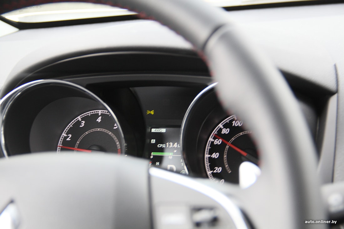 Самая компактная модель из тройки, как кажется, хочет быть более спортивной, чем является на самом деле. Красная прострочка на руле и рычаге КПП, хромированные накладки на педалях, хищный экстерьер — все это будто готовит водителя к тому, что он будет вжат в сиденье сразу же после старта. Но этого никак не происходит. Педаль в пол, двигатель ревет, однако резкого ускорения не случается. Становятся заметны «паузы на подумать» от вариатора. Пробовали и на 60—80 км/ч, и на 90—100 — результат тот же. Двухлитрового «атмосферника» явно не хватает для скоростных эмоций. ASX берет другим.