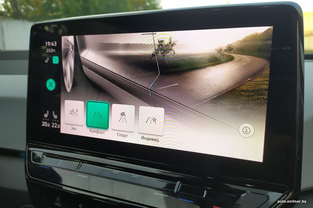 Конечно, на трассе с разрешенными 120 км/ч заряд расходуется быстрее (по времени). С непривычки сложно прекратить коситься на показания приборов. Но вскоре становится понятно, что доберемся. В пути развлекался игрой в возможности адаптивного круиз-контроля. Автомобиль сам держит полосу, не дает выехать за ее пределы. Можно установить и оптимальную дистанцию до впереди идущей машины. Настигнув тихохода, ID.3 сам сбавляет скорость, предотвращая попутное столкновение, и продолжает движение с той же скоростью, что и тихоход.