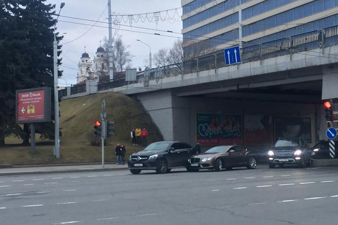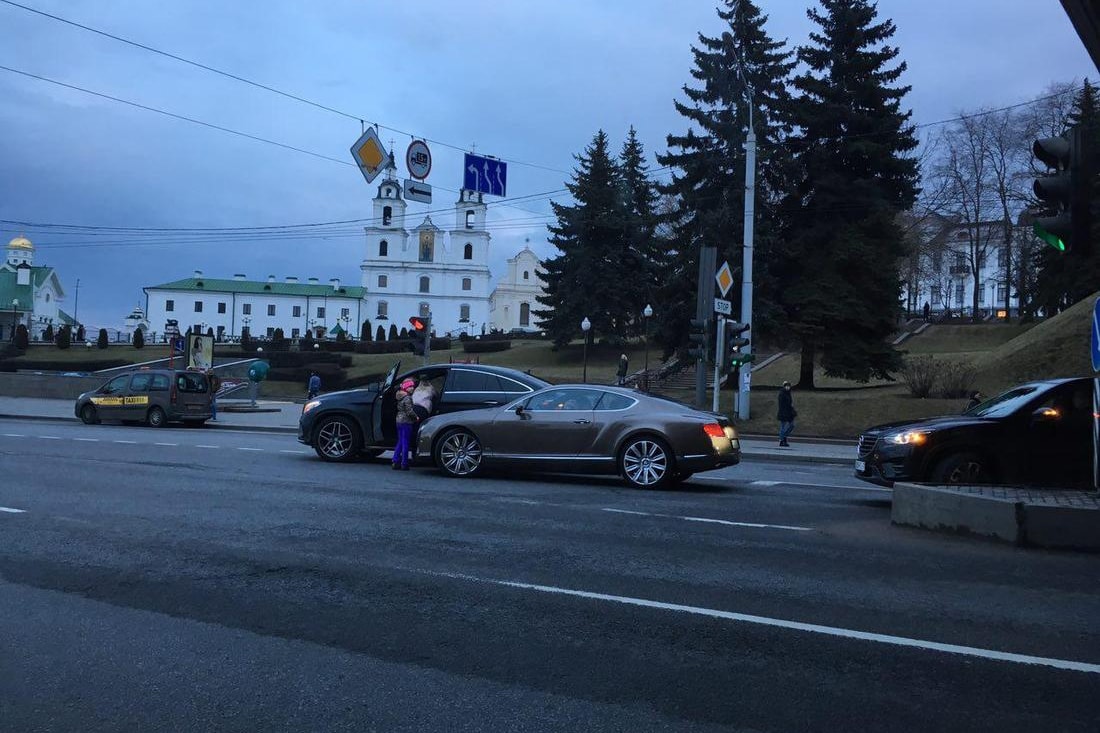 «Автомобилистка на Mercedes совершала левый поворот с ул. Немиги на пр. Победителей со 2-й справа полосы, откуда движение налево запрещено, — такие данные озвучивали в ГАИ. — При этом столкнулась с девушкой на Bentley, которая также поворачивала налево, но из 3-й справа полосы. В результате ДТП никто не пострадал».
