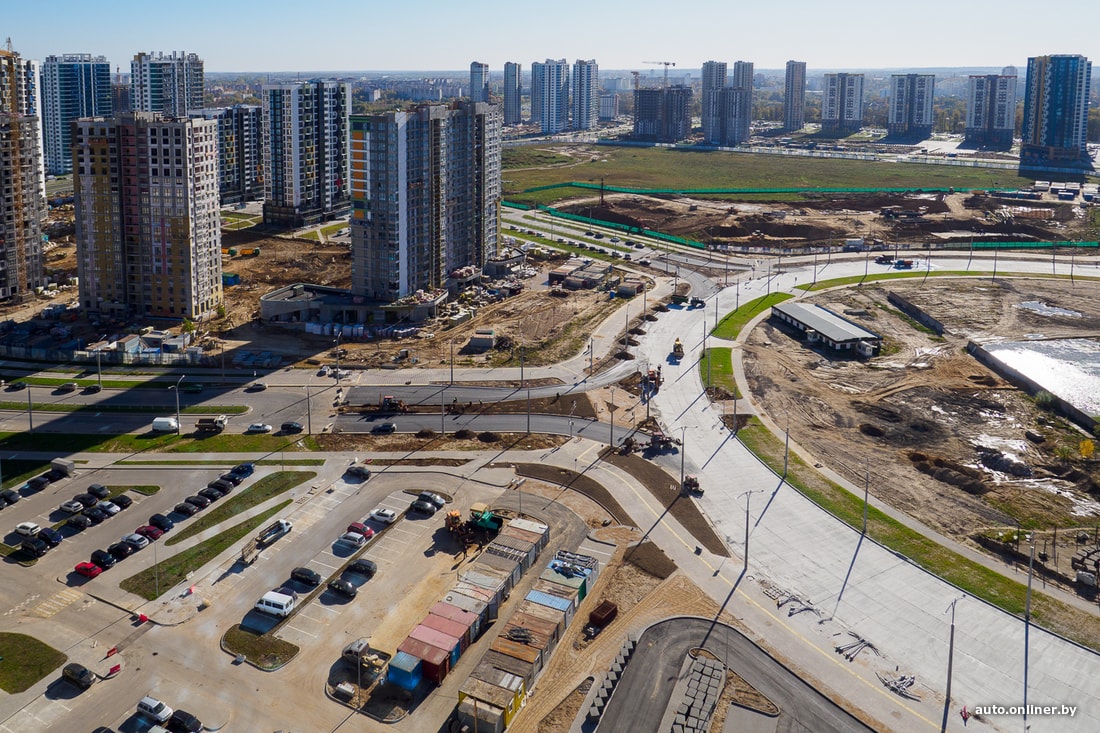 Территория бывшего аэропорта за последние годы заполнилась высотками. Застройка довольно плотная: некоторые многоэтажки смотрят окнами друг на друга. Площадка изменилась до неузнаваемости. Но останется одно из привычных для минчанина зданий — аэровокзал, который считается историко-культурной ценностью. Его и возьмут в транспортное кольцо, значительно превосходящее в диаметре площади Бангалор, Богушевича и даже средний уровень трехуровневой развязки на Дзержинского. По сути это будет огромный перекресток с выездом на пять улиц.