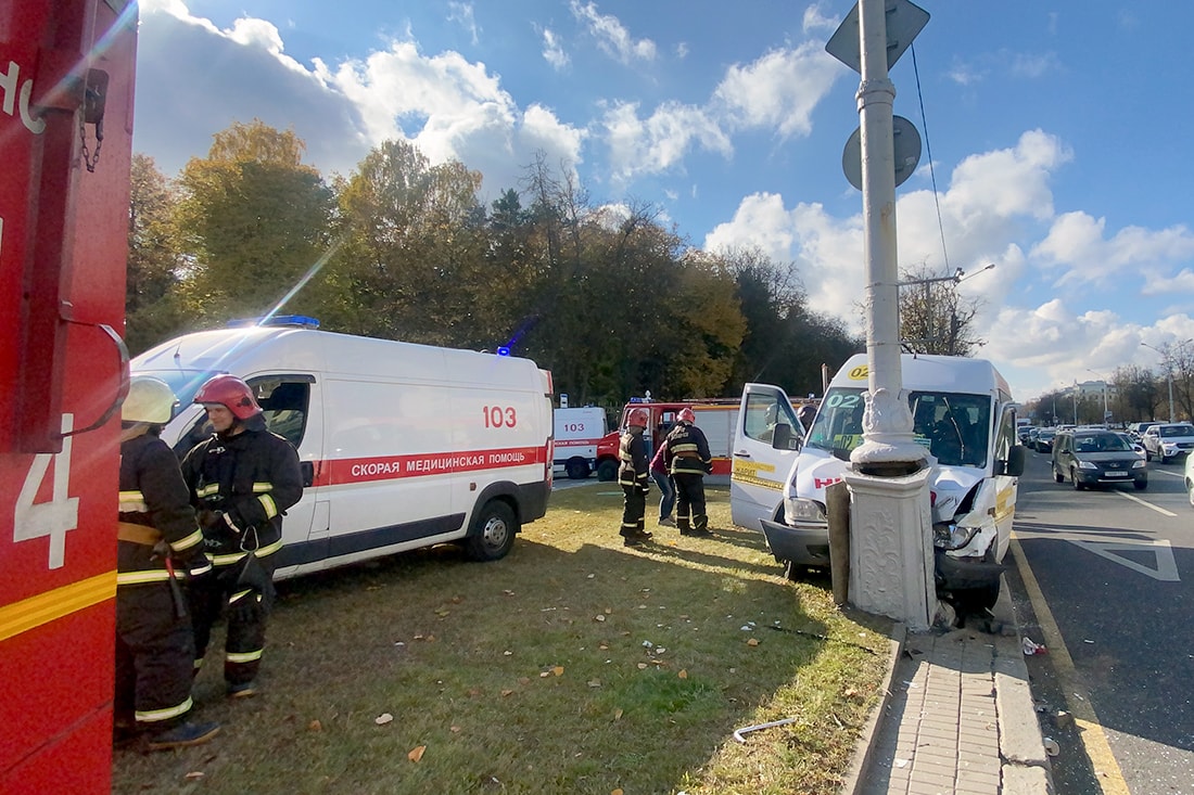 Очевидцы сообщают корреспонденту Onlíner, что на проспекте Независимости маршрутное такси врезалось в столб.