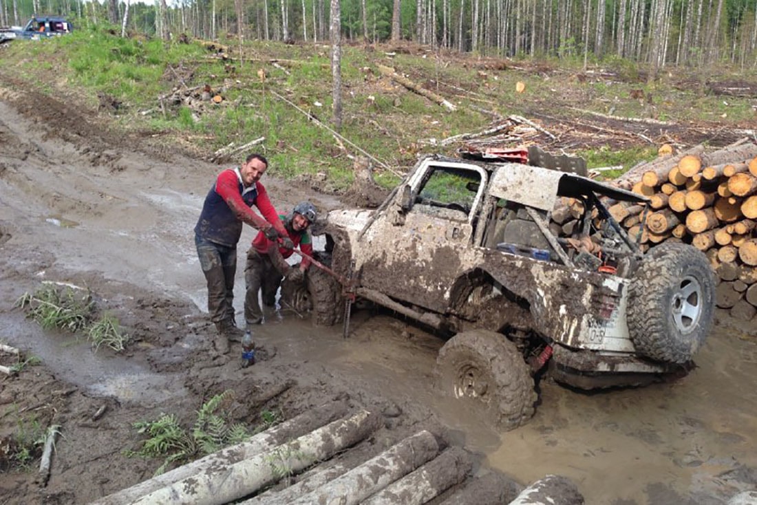 — Если правильно работать с давлением, проходимость машины можно феноменально улучшить! Если она не сильно застряла в песке, то можно выехать просто приспустив колеса. В болоте так уже не получается, но в целом минимальное давление — это отличный способ очень эффективно повысить проходимость. Для обычных шин минимум — это где-то 0,8 бара, а для профессиональных вроде Super Swamper Bogger давление можно снизить и до 0,5 бара, даже без специальных приспособлений типа бэдлоков. Но при этом нужно учитывать, что на внедорожных высокопрофильных шинах заметно снижается клиренс, поэтому перед глубокой колеей нужно подумать, что важнее — дорожный просвет или зацеп шин?