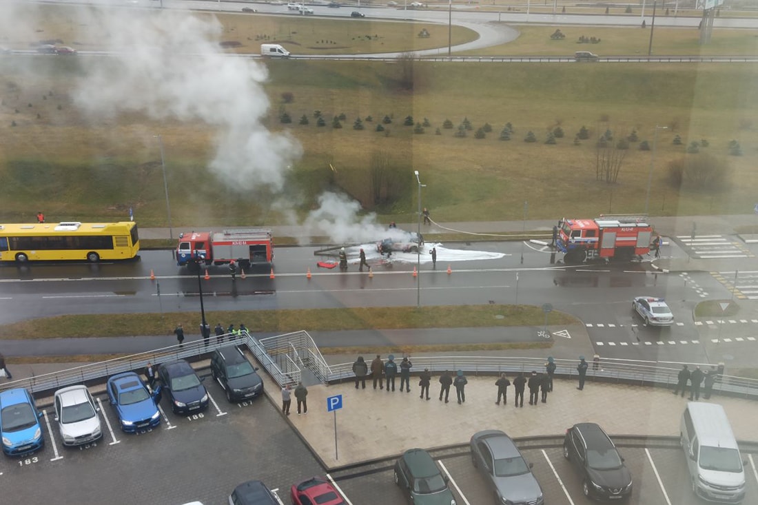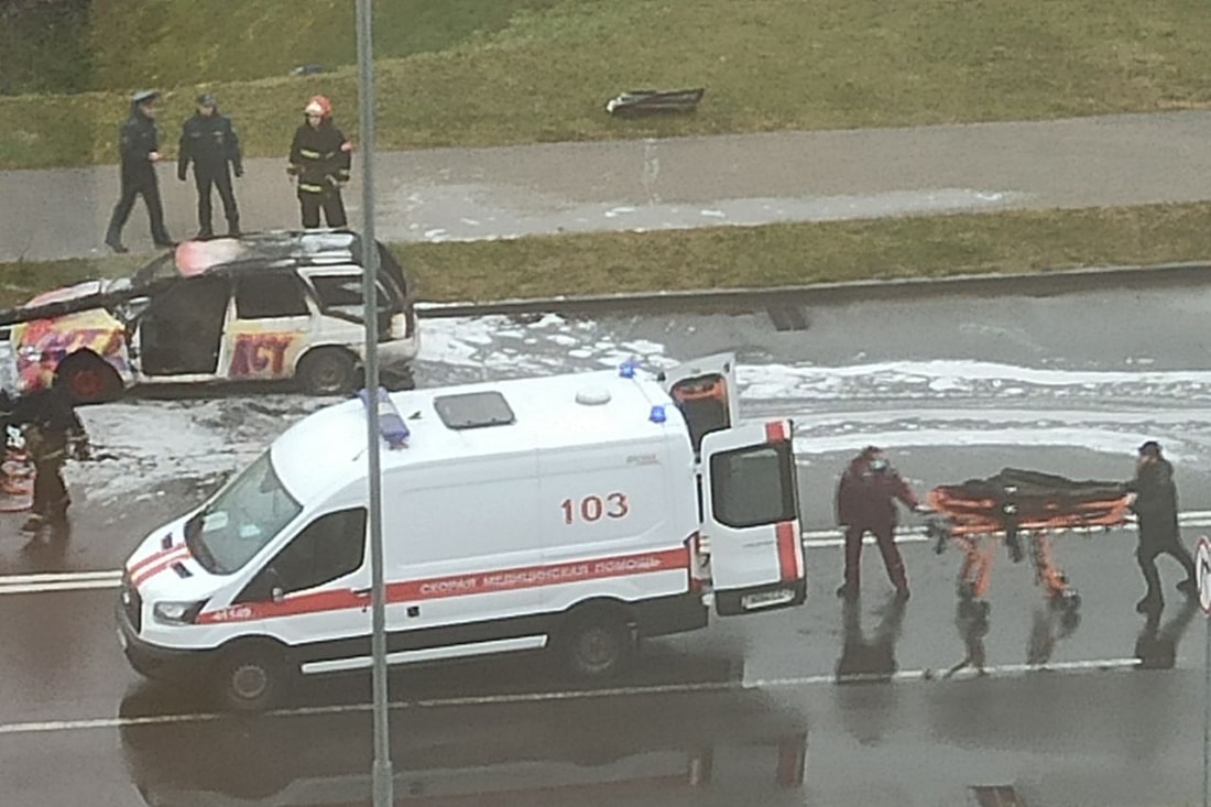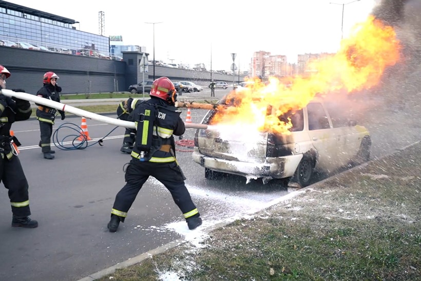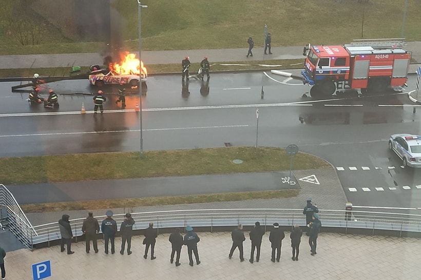 Многие жители столицы видели сегодня утром странную картину в районе развязки пр. Независимости и МКАД. На проезжей части стоял Ford Escort с надписью Intelligency. На месте лобового стекла торчал большой ствол, а задняя часть машина была охвачена пламенем. Оказалось, это не реальное происшествие, не перформанс сюрреалиста и даже не кино.