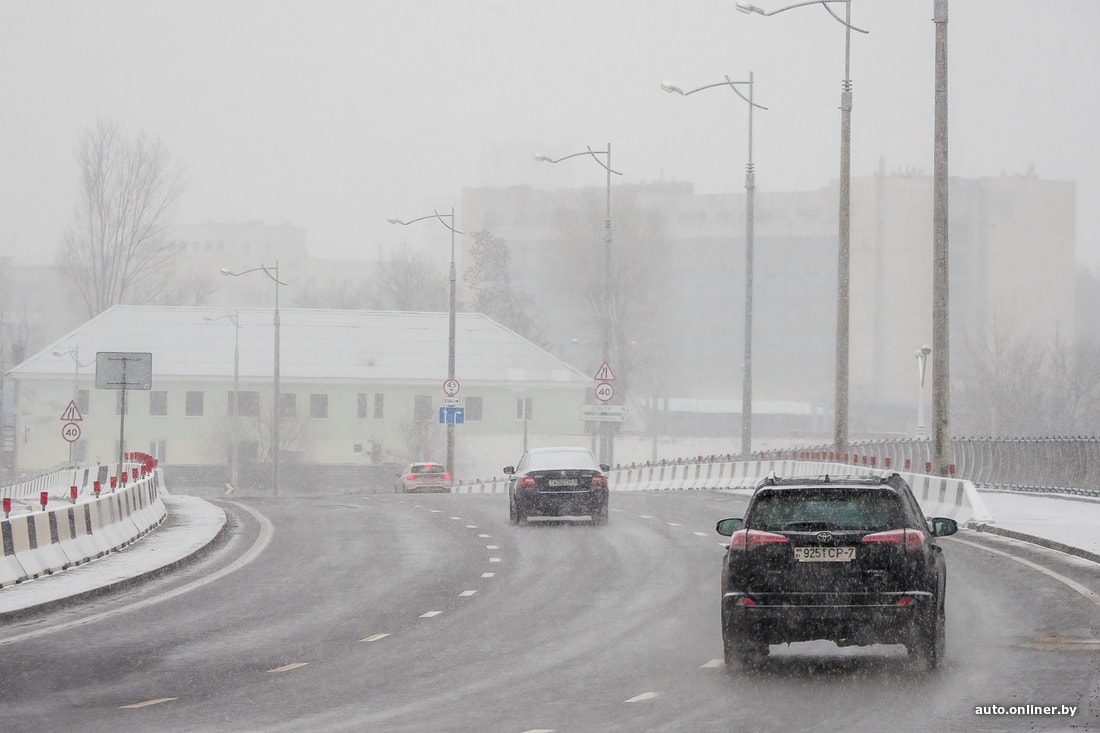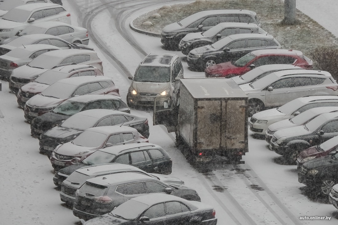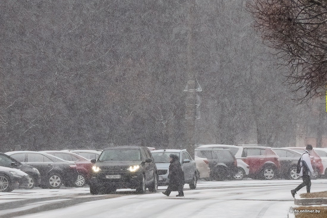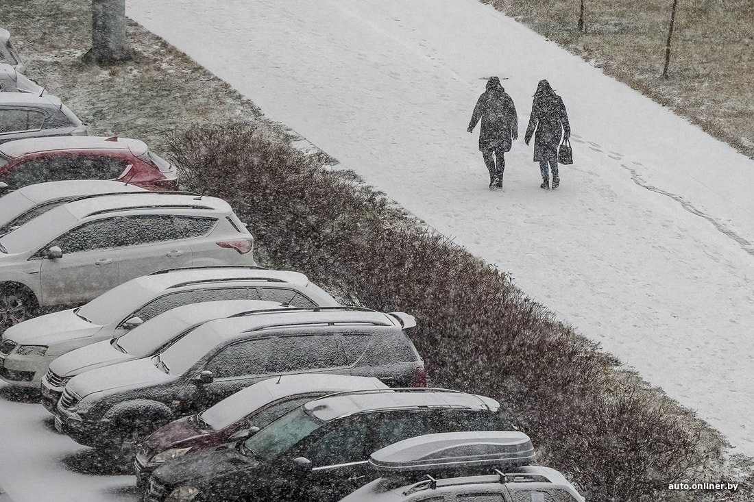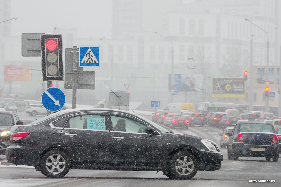 Снегопад от западных границ добрался в обед до Минска. Сыпет, метет — первый раз этой зимой. Водители с тревогой ждут вечера. Кто-то уже «переобулся», кто-то не «переобулся», да и не забылись еще страхи первого в сезоне дня жестянщика. Кстати, вчера участники тех ДТП были на разборе в ГАИ — некоторые получили по 8 базовых штрафа.
