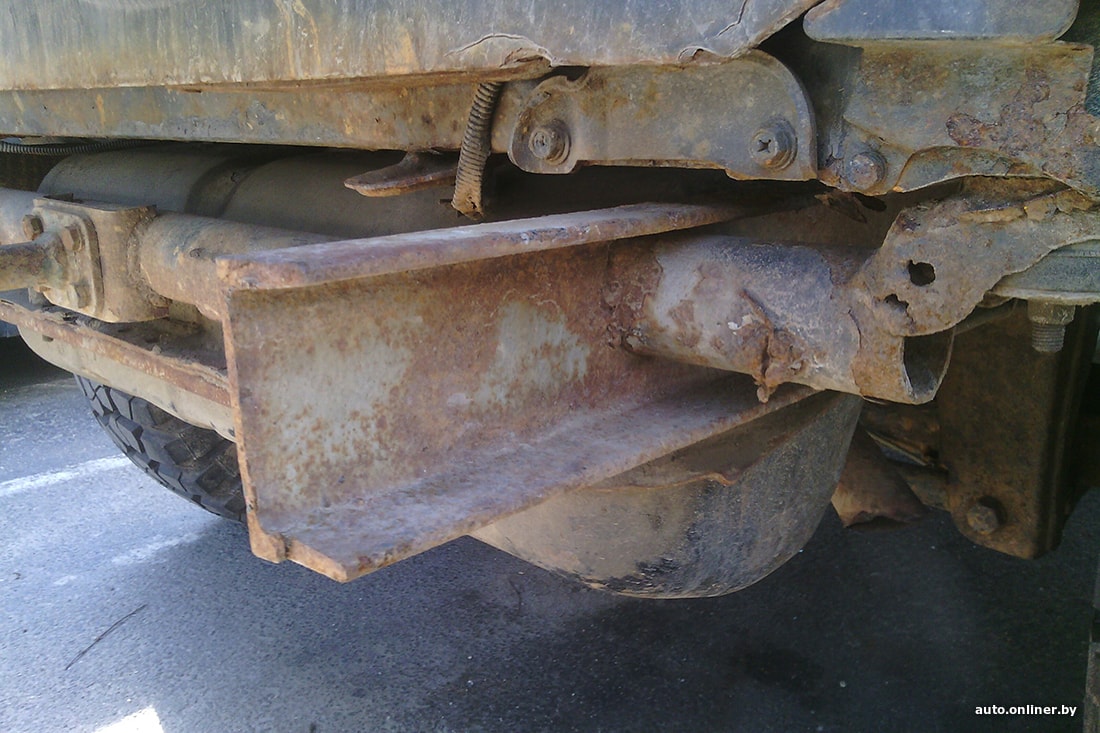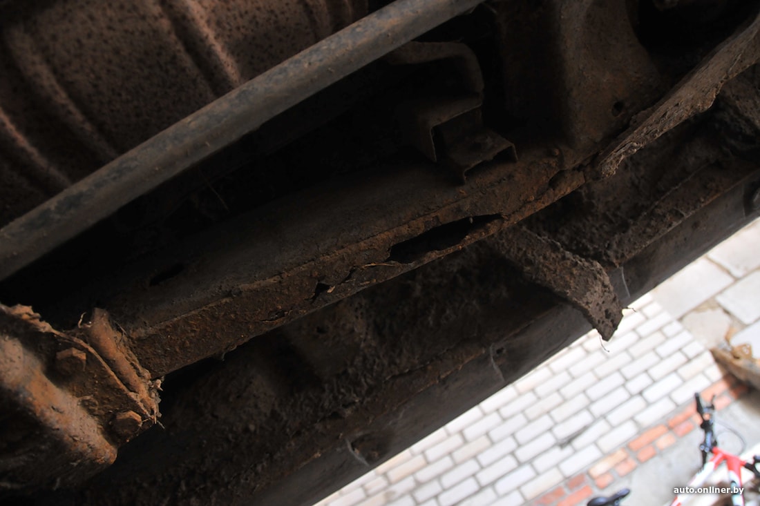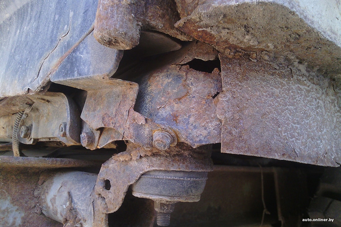 С рамой вообще была отдельная эпопея. У Pajero 2 она «закрытого» типа — коробчатый профиль позволяет достичь необходимой жесткости на кручение при относительно небольшой массе, поэтому Mitsubishi гораздо легче, чем Nissan Patrol или Toyota Land Cruiser. Однако отверстия в боковинах рамы постоянно принимают всю грязь, летящую из-под колес, и с годами это превращается в проблему — рама просто начинает гнить изнутри. Поэтому при покупке фраза «посмотри раму» должна была звучать как «возьми молоток и бей по раме изо всех сил» — тогда, возможно, мы бы обнаружили, что впереди, на месте изгиба возле моторного щита, все совсем плохо. Именно там рама и треснула во время первой тренировки.