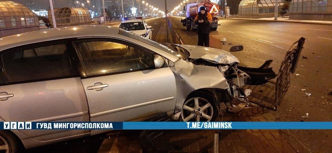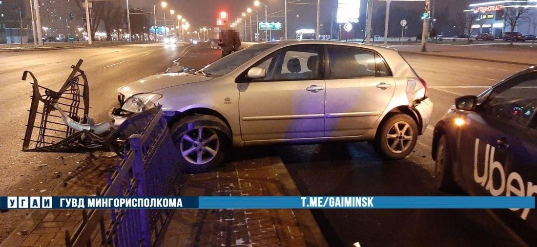 — В воскресенье вечером 20-летний водитель, управляя автомобилем Toyota, двигался по проспекту Дзержинского со стороны улицы Чюрлениса в направлении улицы Голубева. В какой-то момент молодой человек не справился с управлением, выехал на разделительную полосу и снес несколько пролетов металлического ограждения, затем врезался в опорную мачту светофора. Далее, продолжив движение, Toyota протаранила встречный Volkswagen, — рассказала старший инспектор отдела ГАИ Московского РУВД Любовь Трепашко.