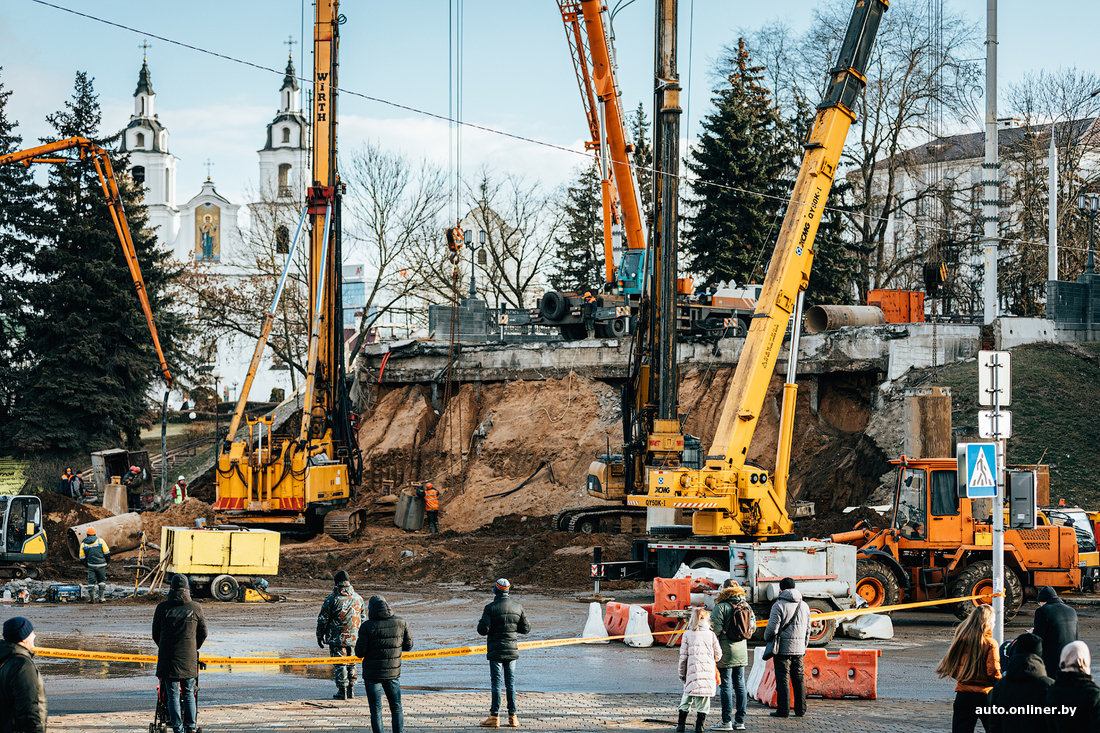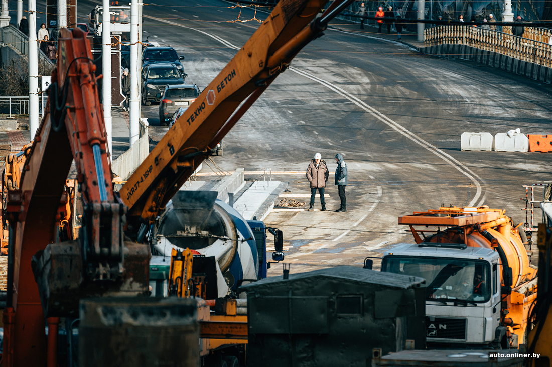 Итак, мост упал, Немига оказалась отрезана от транспортной сети. В первый будний день после обрушения мы внимательно следили за ситуацией в городе. «На глазах вырастали пробки там, где раньше их не было», — писали пользователи. Например, появился затор на пр. Машерова от ул. Кальварийской и почти до Сторожевской. Та же картина наблюдалась на подъездах к нему: по Победителей и по Тимирязева. Стала и Романовская Слобода в направлении Городского Вала, и пл. Якуба Коласа, и пр. Независимости со стороны Московской до Комсомольской.