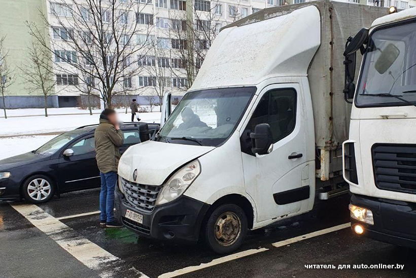 «По предварительной информации, сегодня около 12:30 50-летний водитель, управляя грузовым Renault с полуприцепом, двигался по улице Селицкого со стороны проспекта Партизанского в направлении улицы Шабаны. На пересечении с улицей Алеся Бачило в результате несоблюдения бокового интервала он столкнулся с автомобилем Renault. Тот от удара повредил Nissan, который ехал впереди», — сообщили в Госавтоинспекции.