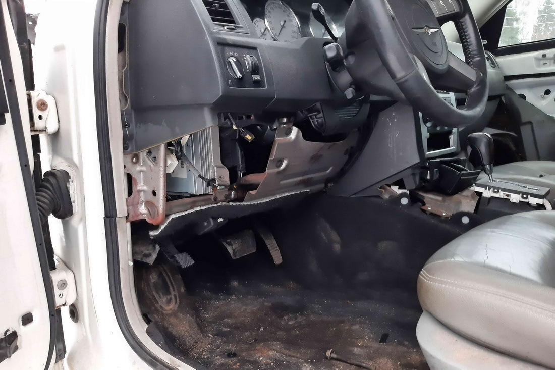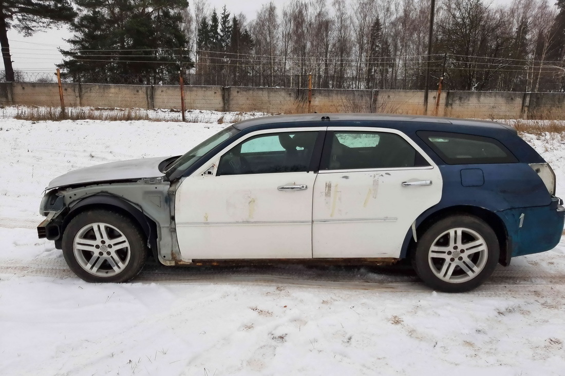 Chrysler 300С, безусловно, своего рода легенда белорусского ГАИ. Еще несколько дней назад таких машин в продаже было две. За Chrysler 300С, выпущенный в 2005 году, с пробегом 433 384 км просили 14 000 рублей. И эту машину купили. Сейчас в наличии только один «грозный универсал» — Chrysler 300С на год моложе (2006 г. в.) с пробегом 479 320 км. И за него хотят выручить 11 000 рублей. Выглядит оставшийся экземпляр, прямо скажем, неважно. Недостает кузовных деталей, кругом ржавчина.