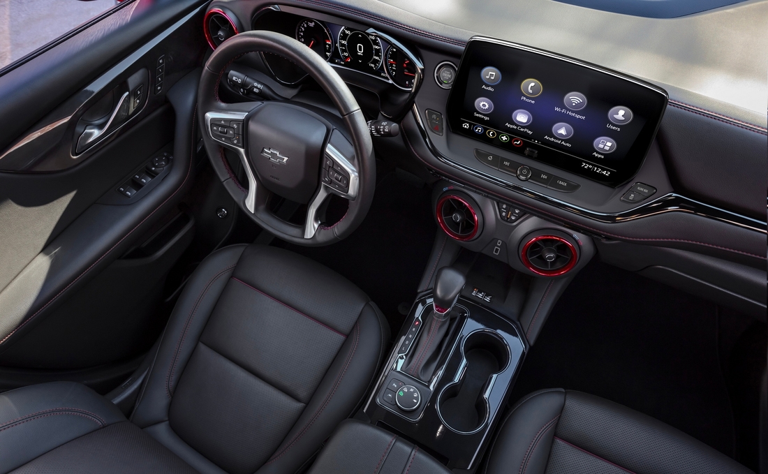 В салоне главным нововведением стал 10-дюймовый экран мультимедийной системы. Для Blazer предлагают беспроводную зарядку и модуль 4G LTE Wi-Fi Hotspot. Пакет Chevy Safety Assist отныне идет по умолчанию, а адаптивный круиз-контроль стал доступен для исполнений 2LT и 3LT.