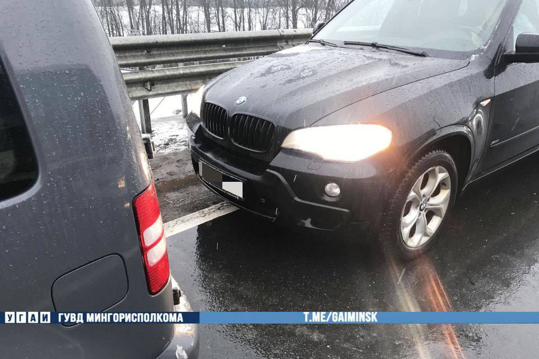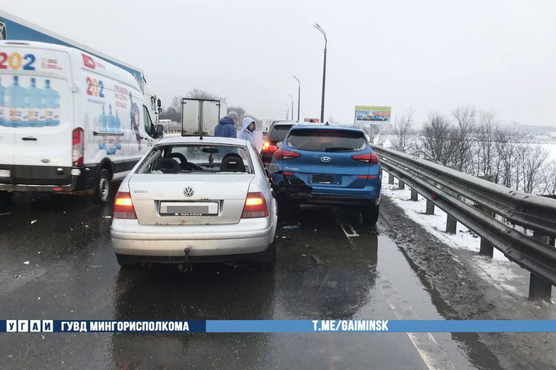 Затор начал возникать после массовой аварии. В ГАИ озвучили предварительную версию: «Водитель Volkswagen Caddy из-за несоблюдения безопасной дистанции столкнулся с Volkswagen Polo. В этот момент водитель Volkswagen Bora, двигавшийся позади, чтобы избежать столкновения, начал перестраиваться и зацепил грузовой DAF. От удара Bora отбросило вправо, он повредил Hyundai. В свою очередь, Hyundai догнал следовавший впереди BMW. А грузовик совершил столкновение с Toyota, ту развернуло и отбросило в отбойник. Затем в DAF врезался Kia».