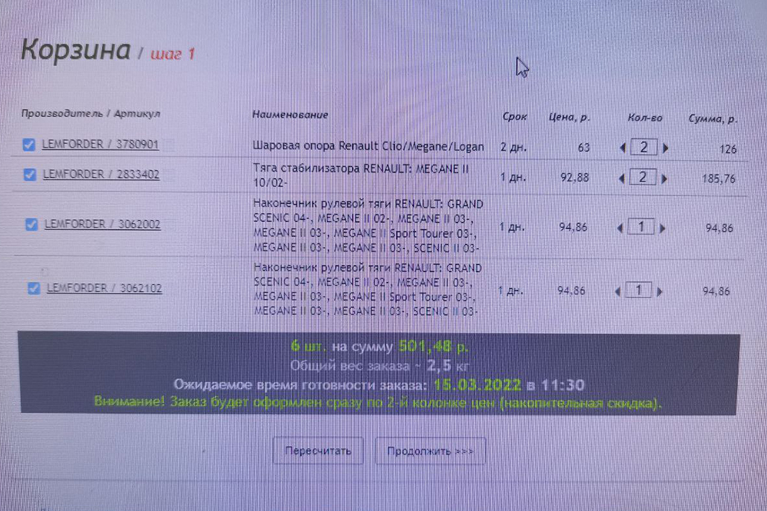 В качестве наглядного примера приведем два снимка, присланных нашим читателем Дмитрием. Цена за шесть автотоваров, оформленных 23 февраля, - 229 рублей. Те же позиции, но сегодня, обойдутся в 501 рубль.