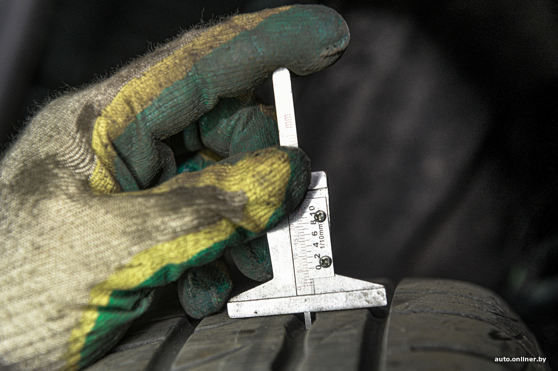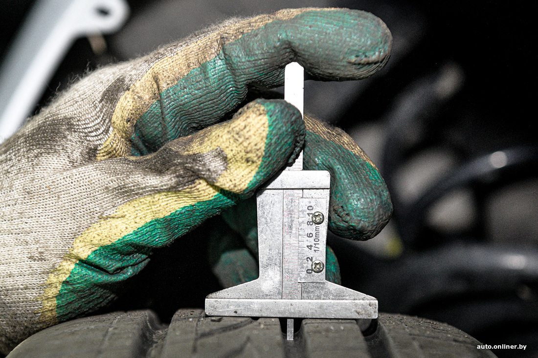 Вердикт от сотрудников СТО: «Остаток протектора — 5,5 мм. При этом дата выпуска резины — середина 2020-го. Безусловно, износ интенсивнее, чем у средней легковушки обычного минчанина».