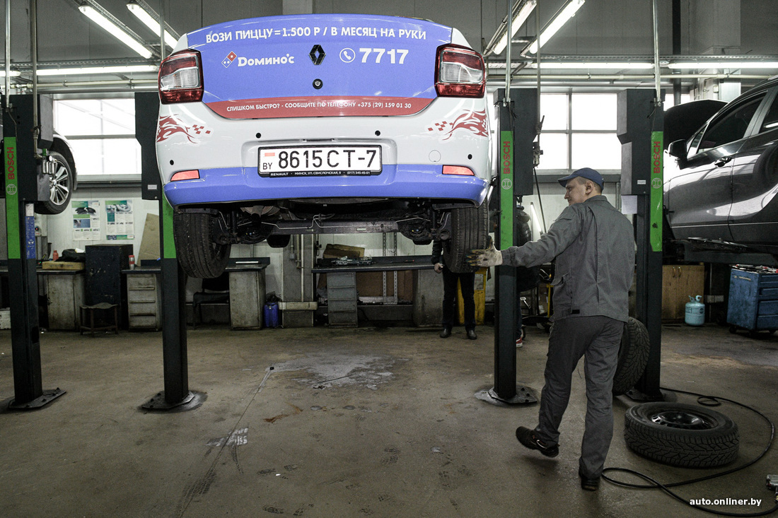 Представитель службы доставки подхватывает: «При сезонном визите на шиномонтаж мы делаем полный осмотр подвески и тормозной системы. Максимальный срок, который отхаживал у нас один комплект, — четыре сезона. Чтобы сориентироваться, с нашей работой это примерно 50—55 тыс. общего пробега автомобиля. Поездки довольно специфические: 3—4 км в одну сторону, разворот во дворе и обратно. Нужно понимать, что в компании за машиной не закреплено определенное колесо».