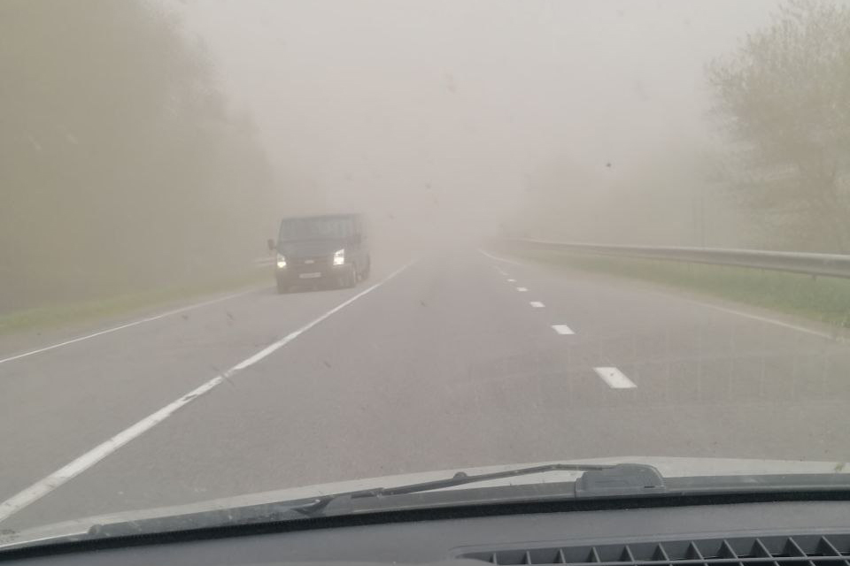 Наш читатель Руслан также прислал снимки с трассы М10, проходящей по югу страны. На фото — участки Пинского и Лунинецкого районов. Водитель указал, что не заметил последствий ДТП из-за природного явления, но видимость была близка к нулевой.