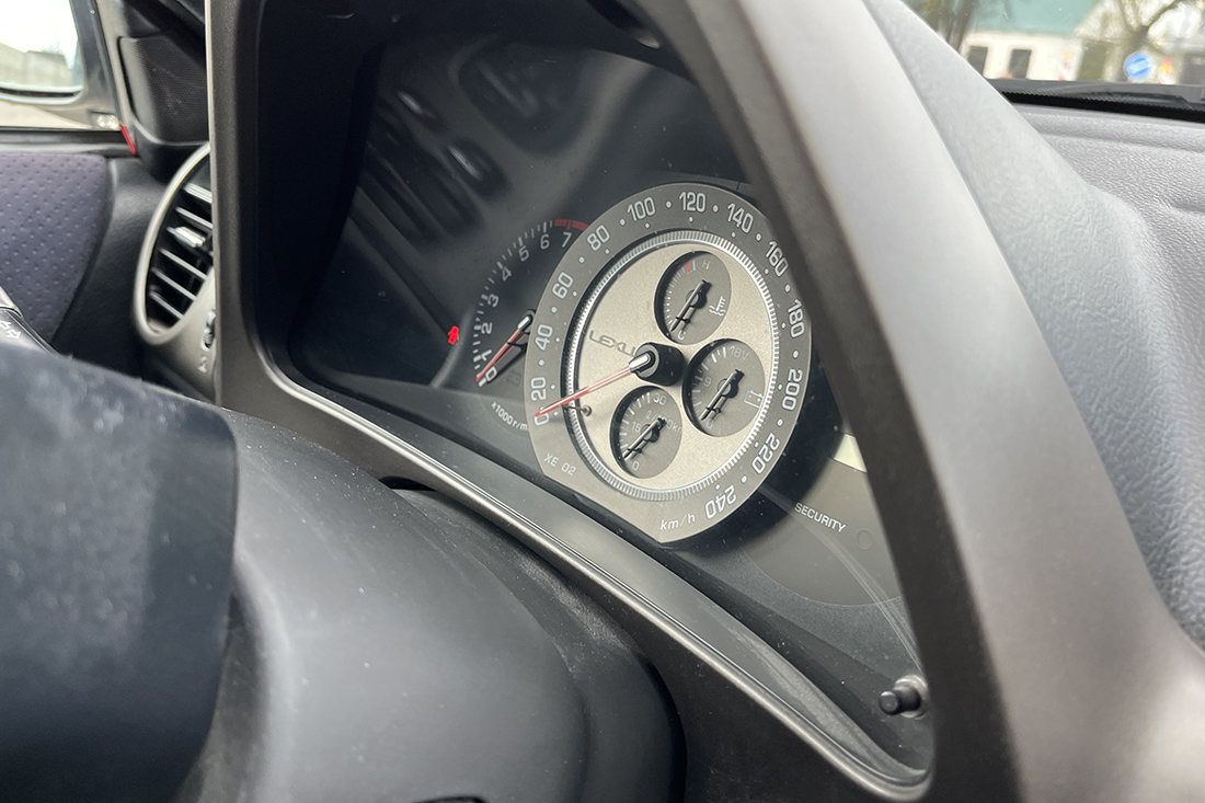 Еще переключение передач на «механике» осуществляется с некоторым затворным характером, что придает особое чувство при вождении. В общем, поездка на IS субъективно напоминает управление картингом: да, сложно расслабиться, но удовольствие от вождения невероятное. Отдельного внимания заслуживает панель приборов — ее скучной точно не назовешь. Не совсем информативны маленькие циферблаты, стрелка расхода топлива и заряда аккумулятора, но зато дизайн напоминает циферблат больших наручных часов.