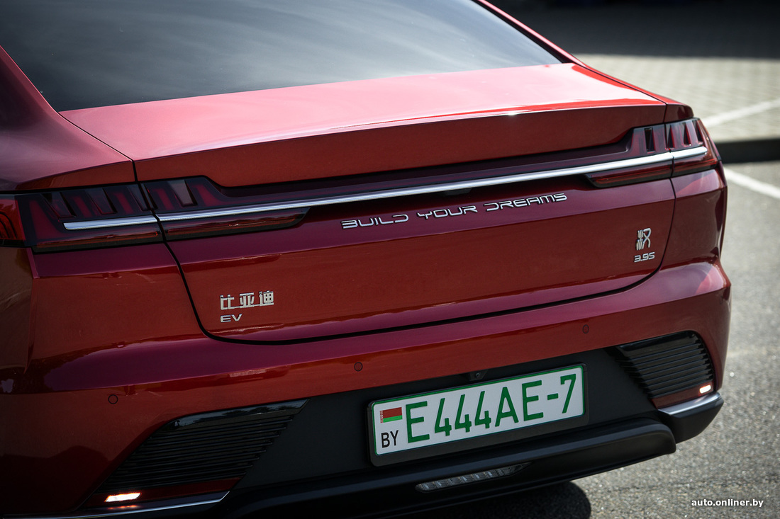 Переднеприводные версии этого седана оснащаются одним синхронным электромотором мощностью 222 л. с. Крутящий момент у двигателя — 330 Н·м. Базовая версия HAN разгоняется до сотни за 8 секунд. Довольно долго для электрокара, претендующего на премиум. Но вот полноприводные модификации с двумя моторами суммарной мощностью 494 л. с. выстреливают до 100 км/ч быстрее чем за 4 секунды. Крутящий момент топовых версий — 680 Н·м. Интересный момент: на крышке багажника производитель разместил шильдик «3.9 S», который означает разгон до сотни. Мы такое встречаем впервые.