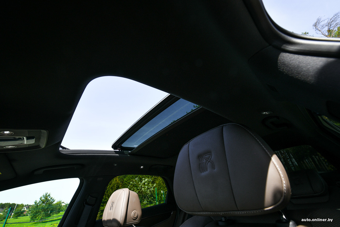 — Хочу отметить отличное исполнение и качественные материалы отделки салона. Здесь присутствует кожа NAPPA, натуральное дерево, алюминий. Видно, что на материалах не экономили. При езде или прослушивании громкой музыки ничего не скрипит и не дребезжит. Все кресла, в том числе на втором ряду, имеют функции обогрева и вентиляции. Среди других премиальных опций — панорамная крыша, атмосферная подсветка салона. Любопытно, что имеется возможность устанавливать разные цветовые вариации в передней и задней части салона, — рассказал владелец HAN.