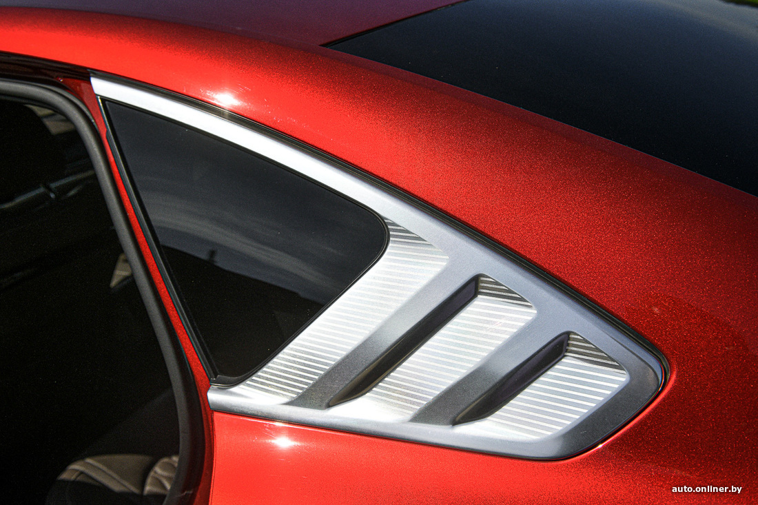 Трудно не обратить внимание на эту машину в потоке. В отличие от монолитной Tesla, HAN может похвастаться весьма смелыми линиями. Передняя LED-оптика переплетена с накладкой, имитирующей решетку радиатора. Бампер имеет хищные «клыки» и гармонично сочетается с формой фар. Профиль украшает заметное ребро, проходящее над выдвижными дверными ручками. Да и в целом силуэт кузова очень «заднеприводный».