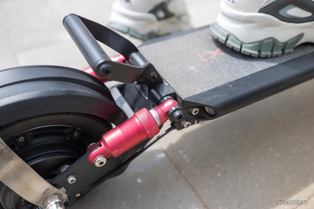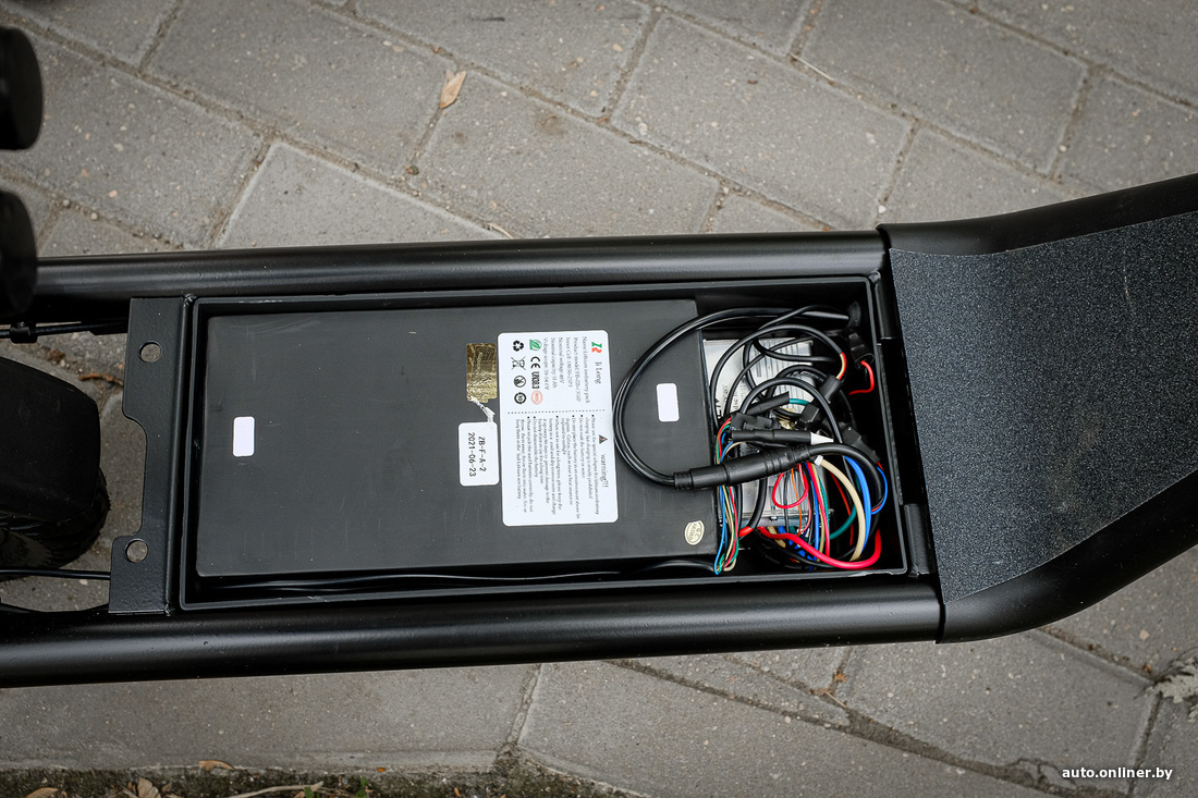После покупки хозяин самоката своими руками сделал гидроизоляцию, а также потратился на крылья: «Они довольно слабые. На заднем крыле пришлось запаять трещину и сделать удерживающую пластину, чтобы оно не тряслось. Переднее пока обмотано армированной изолентой, но им тоже надо будет заняться. Из других минусов отмечу разве что плохой фонарик. Он служит скорее для обозначения тебя на самокате, нежели для освещения того, что впереди. Вечером на высокой скорости нужно быть крайне внимательным. В остальном вопросов нет, меня самокат очень даже устраивает».