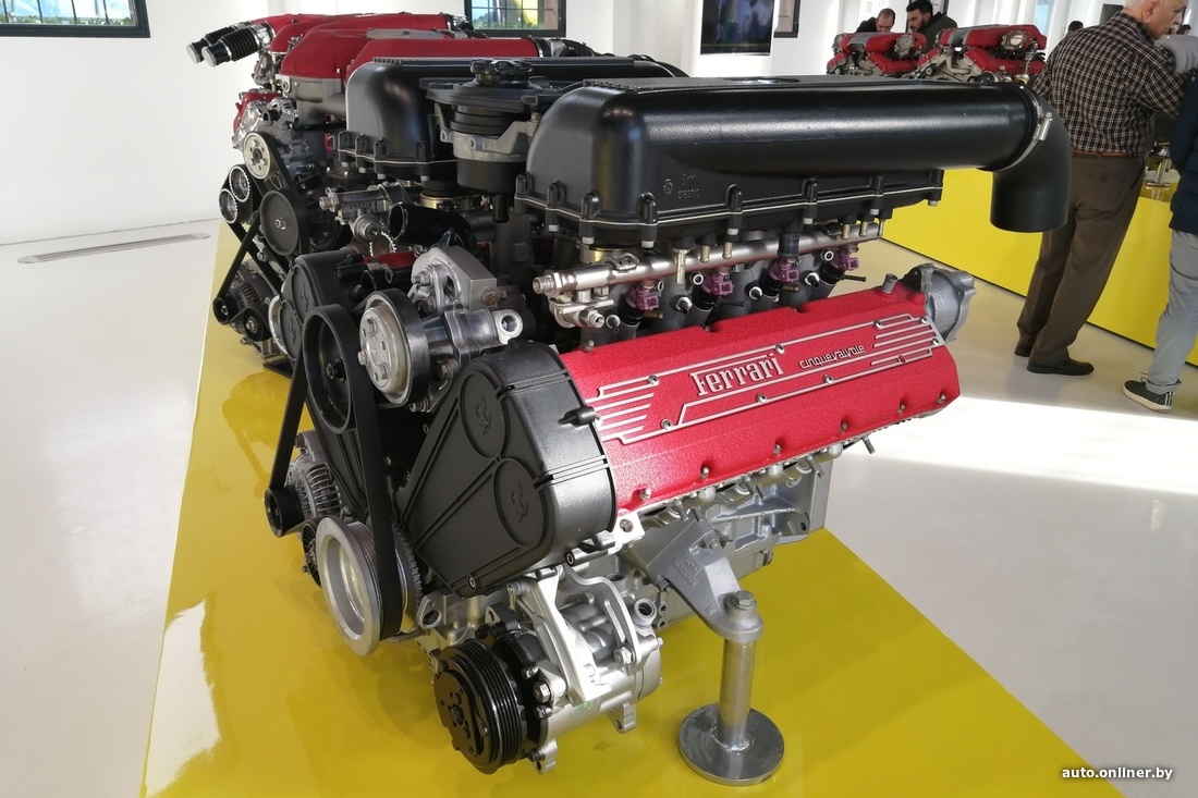 Здесь собрана впечатляющая коллекция произведений инженерного искусства мотористов из Маранелло, причем бо́льшая часть представленных двигателей — это V8 и V12 разных годов выпуска, которые использовались не только на дорожных спорткарах, но и на болидах «Формулы-1».