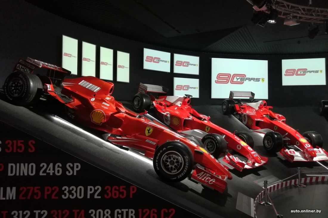 Отдельного упоминания заслуживает зал гоночной славы Ferrari, где можно любоваться множеством победных кубков и знаковыми гоночными болидами, благодаря которым «Скудерия» смогла завоевать чемпионские титулы в «Формуле-1». Первый чемпионат «Формулы-1» был проведен в 1950 году — и за всю многолетнюю историю этого престижного соревнования Ferrari стала единственной «конюшней», принявшей участие в каждом его сезоне! Кроме того, итальянская команда является рекордсменом по числу побед в Кубке конструкторов: у Ferrari насчитывается 16 триумфов.
