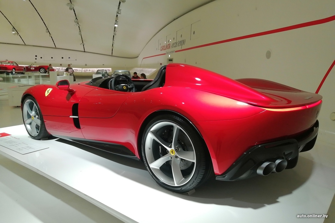 Источником вдохновения для разработчиков одноместного спайдера Ferrari Monza SP1, представленного в 2018 году, стали гоночные машины пятидесятых годов прошлого века. Это одна из самых дорогих и эксклюзивных дорожных моделей Ferrari. Она лишена крыши и лобового стекла, а под капотом скрывается 810-сильный «атмосферник» V12 объемом 6,5 л. Максимальная скорость — около 300 км/ч.