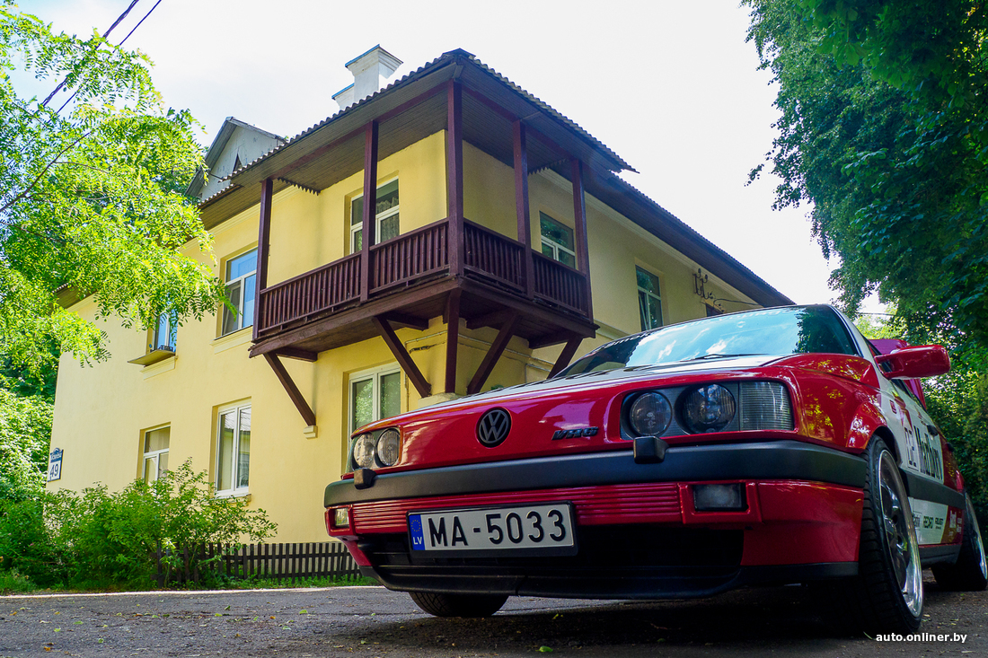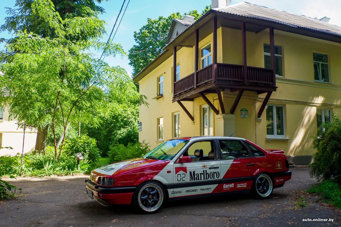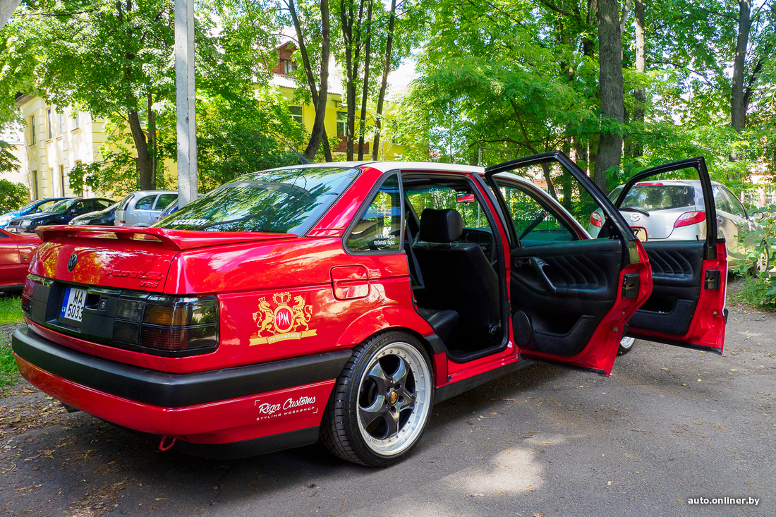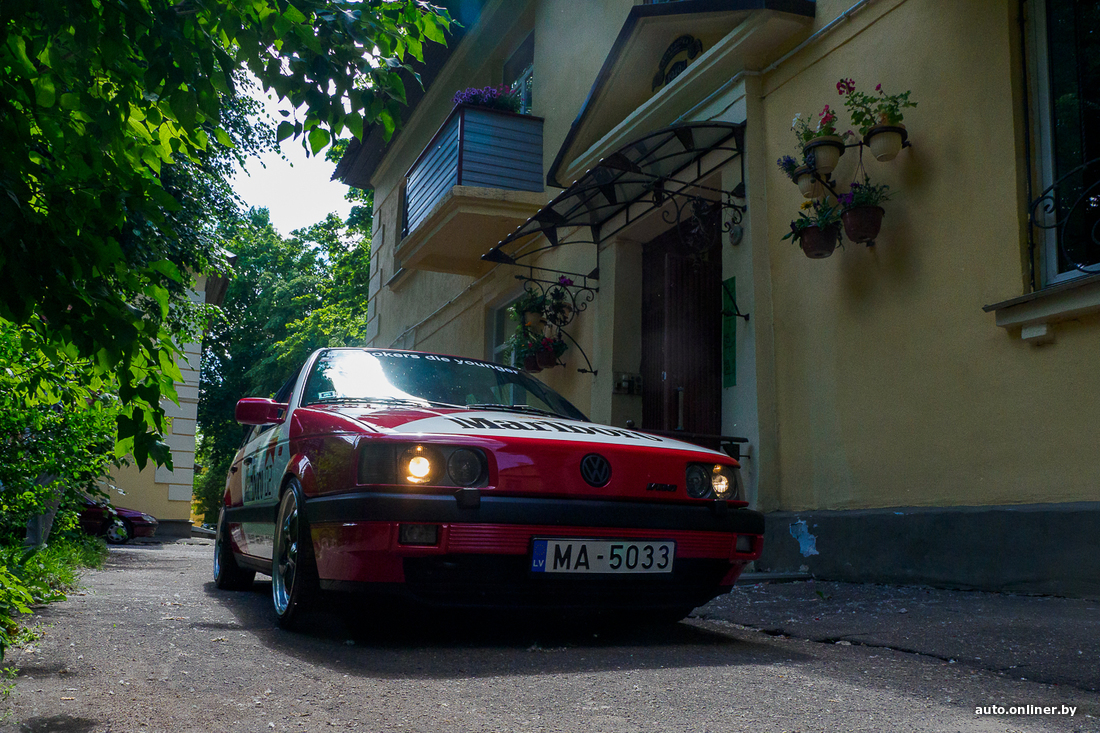 Двое парней из Риги приехали в столицу Беларуси просто хорошо провести время — «Воспользовались безвизом». Заодно решили выгулять оригинальный (не собранный) американский Volkswagen Passat 1992 г. в. «Изначально владельцем был один дедушка, — рассказал владелец. — Сохранился автомобиль идеально: весь металл был целым, без ржавчины. Только пороги были погнуты (скорее всего, в результате кривой парковки). Подгнила только планка под замком багажника. „Пассат“ сменил пару хозяев, которые вкладывались в его преображение, прежде чем попал в мои руки. К тому моменту старый 2-литровый мотор уже заменили на более мощный — VR6 объемом в 2,8 л. от B4. Встал идеально. Поменяли диски, добавили оклейку в стиле DTM».