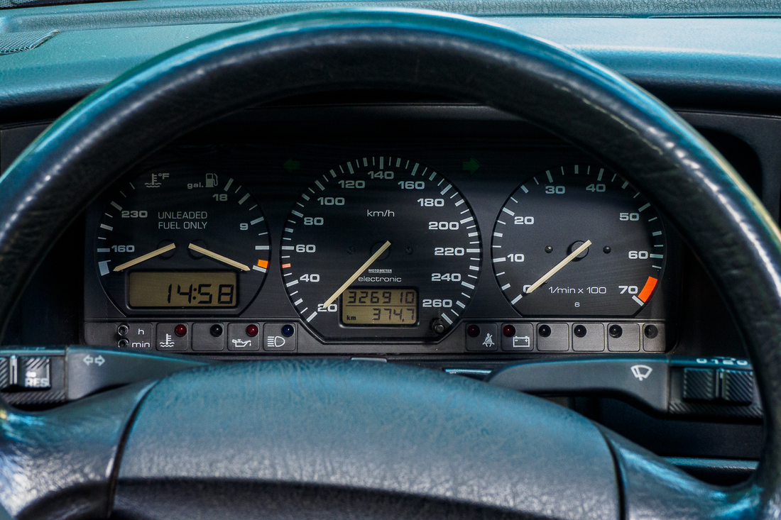 Комплектацию этой машины иначе как богатой для 1992 года не назовешь: круиз-контроль, кожаные сиденья, задний диван выдвигается, предусмотрены встроенные подстаканники, такси-консоль с дополнительными кнопками. Одним словом, не просто янгтаймер, а комфортабельный янгтаймер.