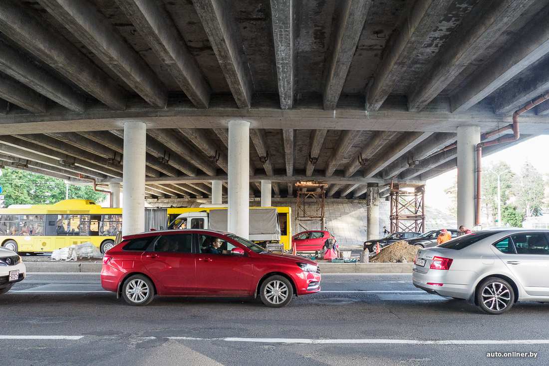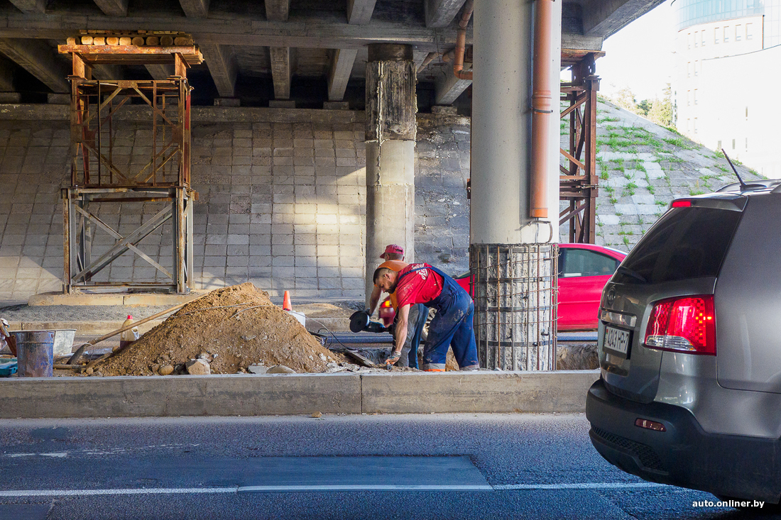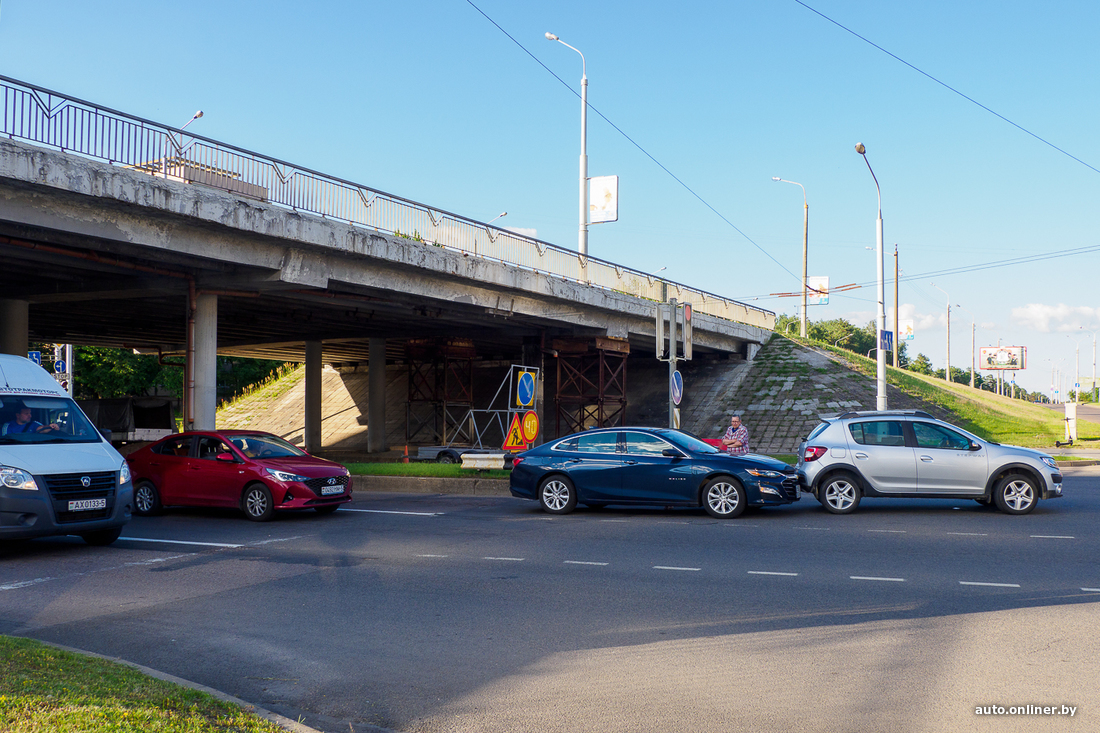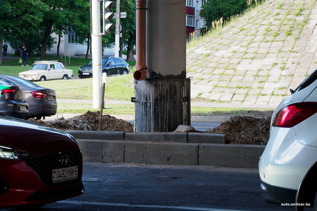 О том, что с путепроводом на пересечении пр. Независимости и ул. Стариновской что-то не так, было понятно еще в 2019-м. Еще тогда столичные водители присылали фото с изображением моста: на участках конструкции отслаивались слои бетона, обнажая арматуру. Было зафиксировано даже ЧП: на движущийся Opel упал кусок штукатурки. В эти дни там проходит ремонт.