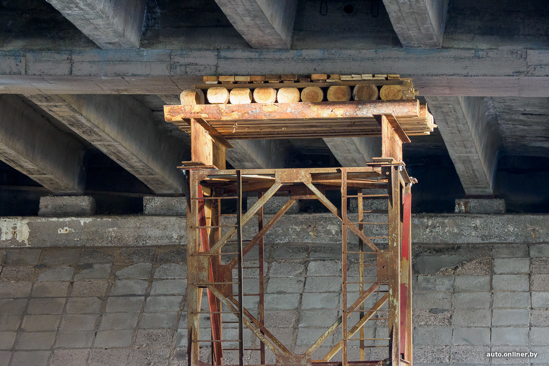 Балки поддерживают конструкции из металлических лесов и деревянных балок. Выглядит максимально надежно.