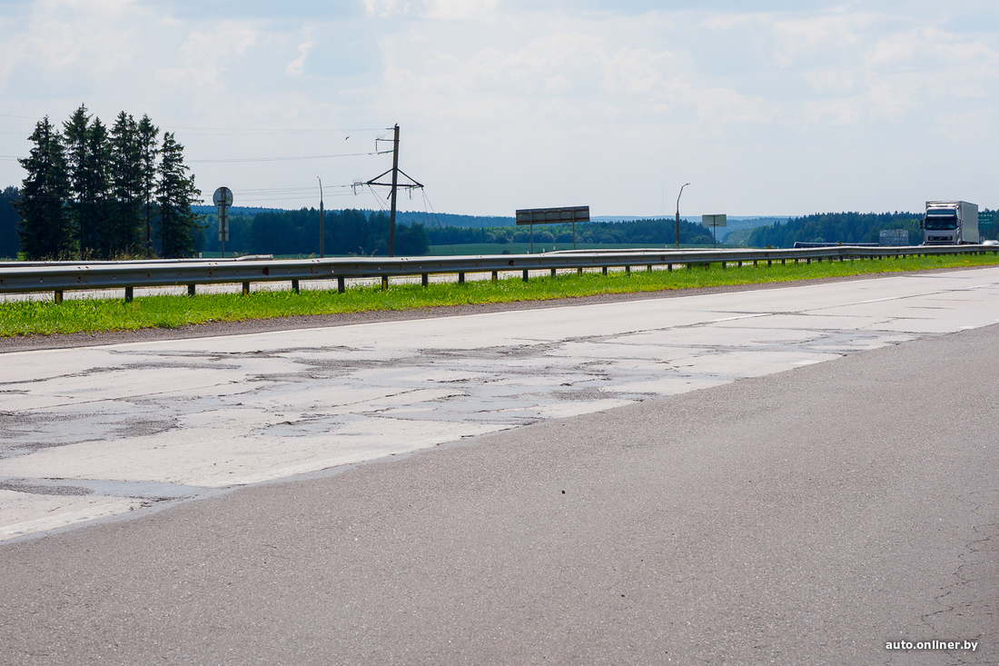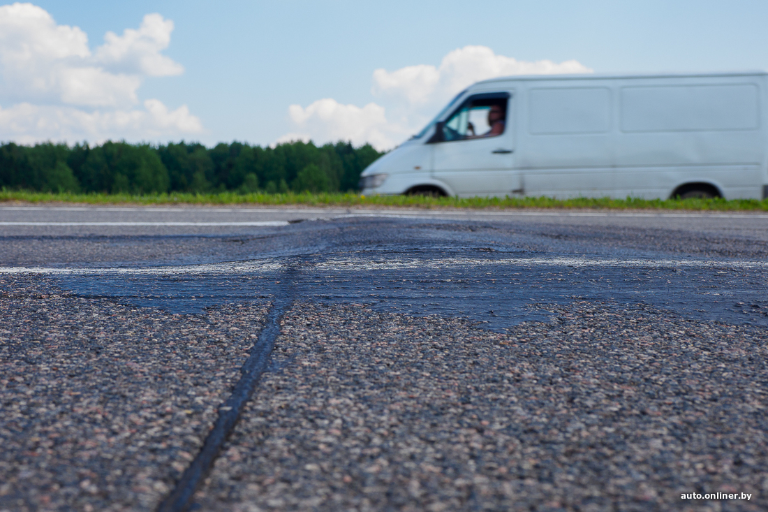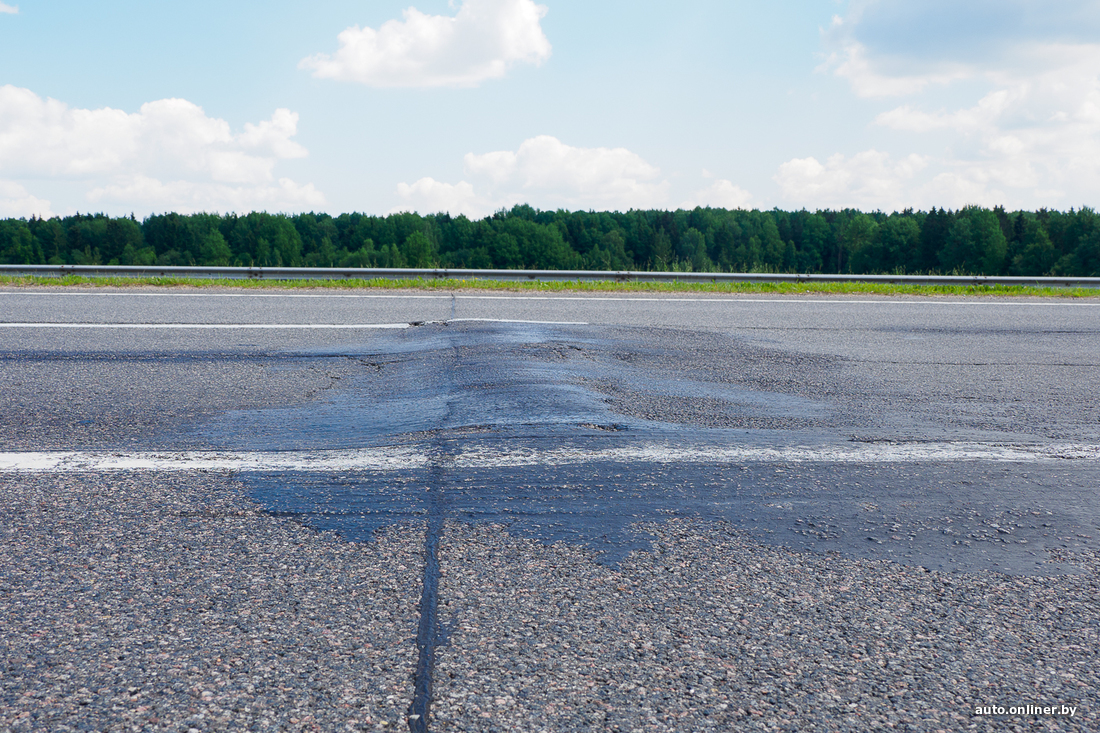 Жара продолжается, хоть и не такая яростная, как посреди недели, — все же столбик термометра опустился ниже 32 градусов. Некоторые белорусские дороги оказались не менее метеозависимыми, чем люди. Например, витебская M3. На участке между Минском и Логойском бетонные плиты принялись наползать друг на друга, заставляя водителей прыгать на трамплинах.