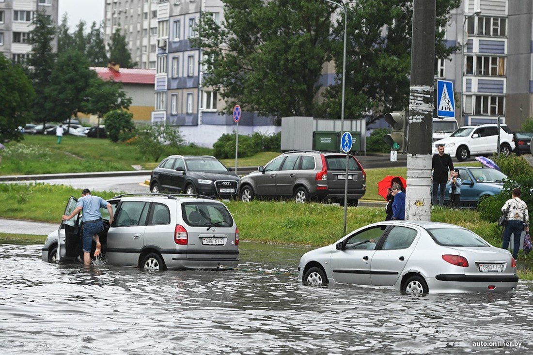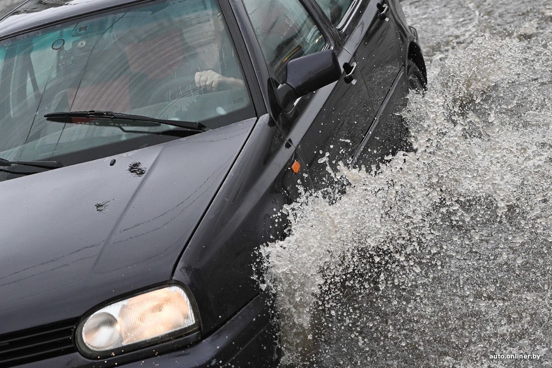 Минчанин Максим в районе 18 часов оказался на улице Гурского. А там такая картина: отважные авто, не боящиеся гидроудара, бороздят воды перекрестка.