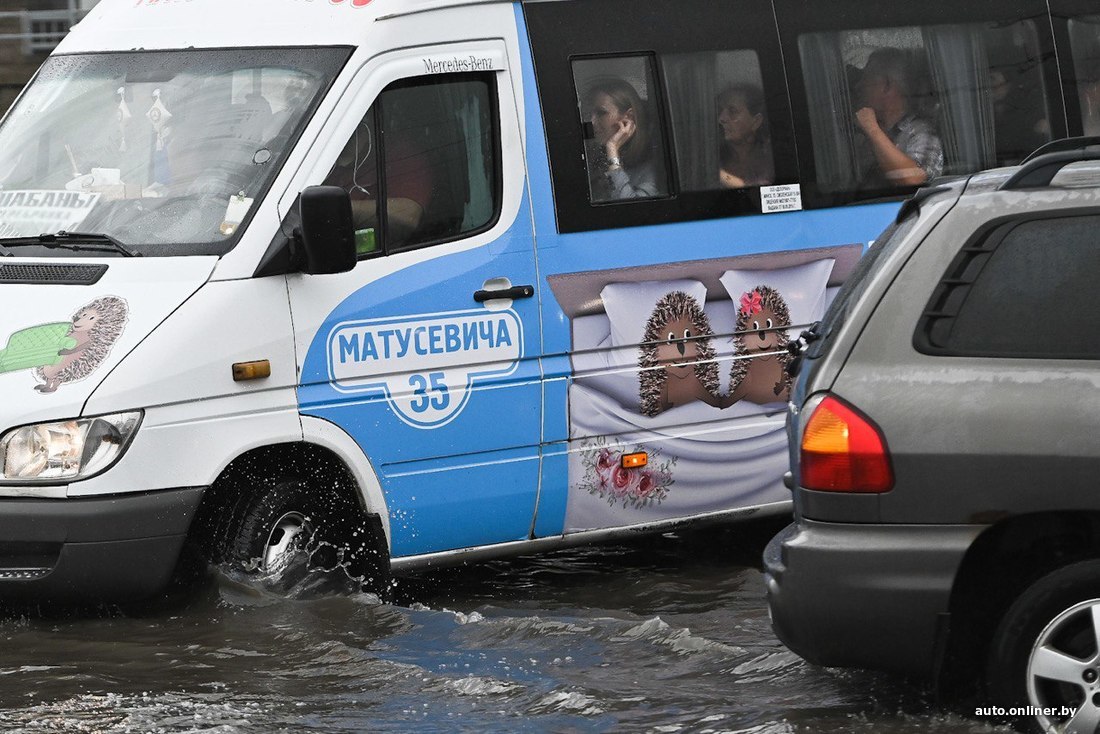 «Минсктранс» также сообщает о временных трудностях. Так, начиная с 18:03 в городе стал останавливаться общественный транспорт (а затем, когда вода уходила, снова возвращаться на линию). Троллейбусы и автобусы застопорились на бульваре Шевченко в направлении ул. Хоружей, на ул. Пинской в обоих направлениях, на Богдановича также в обоих направлениях. Стоял транспорт на ул. Туровского, Крупской, Малинина, Куйбышева, Карастояновой, Калиновского, Кнорина (здесь организовали объездной маршрут).