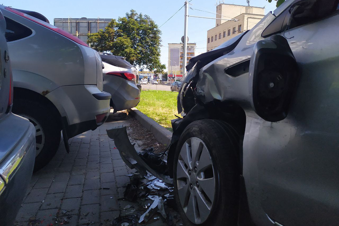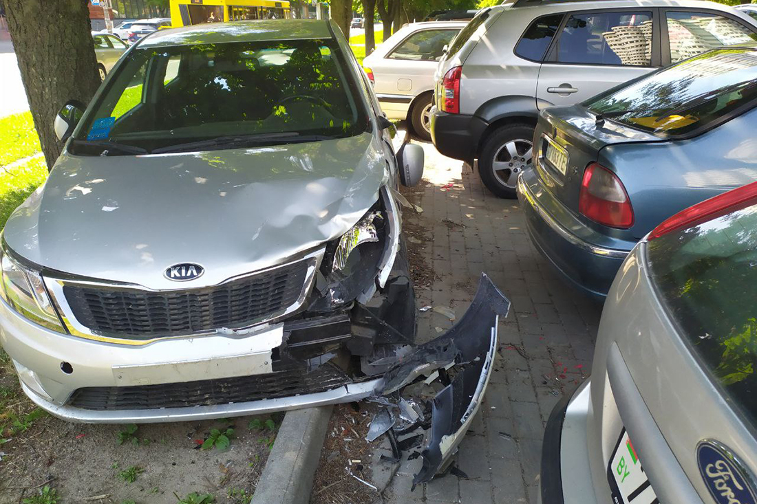 Жители Минска обратили внимание на странным образом стоящий на ул. Хоружей автомобиль — на газоне, перпендикулярно разрешенному способу постановки. Таким образом Kia стоит уже более недели. Со стороны дороги не видно, но на нем есть повреждения, характерные для ДТП. В нашем распоряжении оказалось видео момента аварии.
