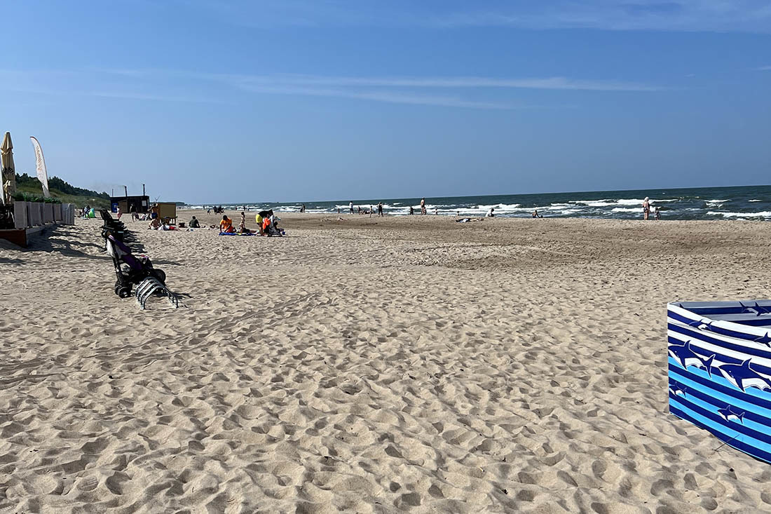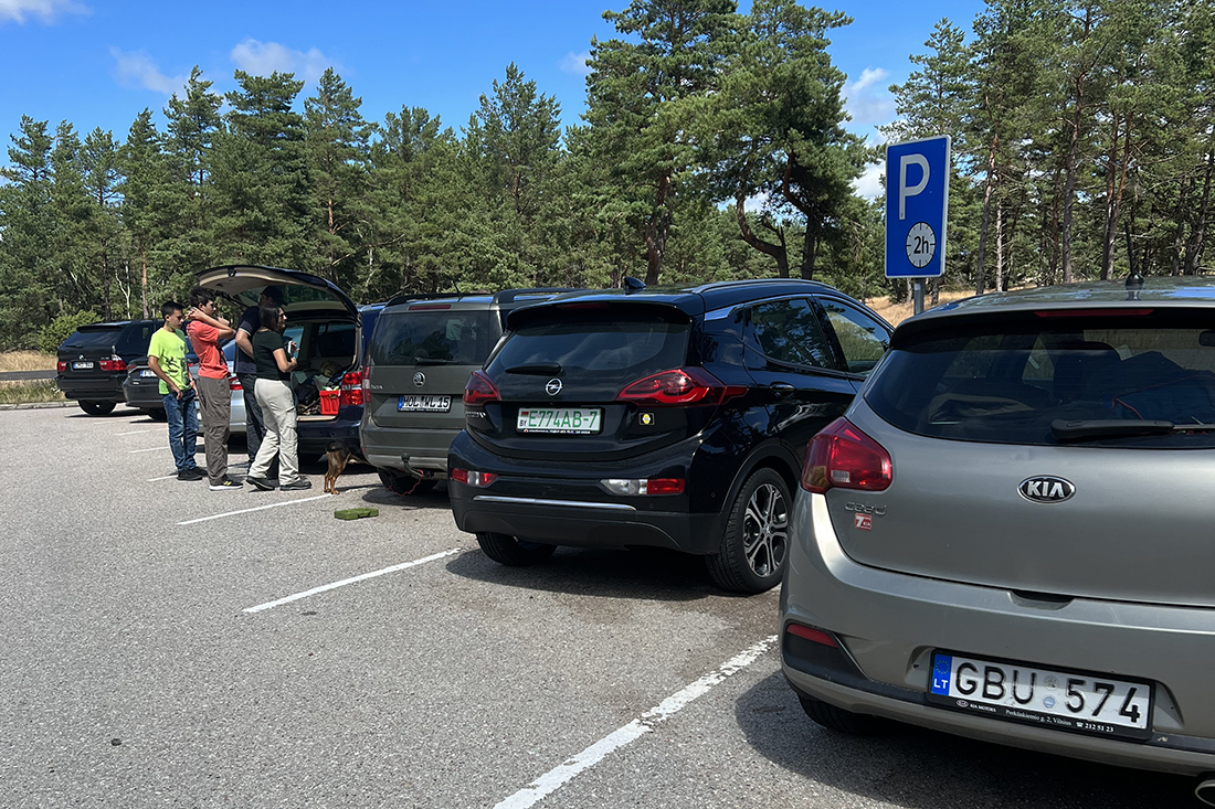К счастью, на трассе, ведущей к морю, в избытке быстрых, а главное, бесплатных зарядок: практически каждые 30—50 км можно встретить станцию мощностью 50 кВт. Мы остановились лишь один раз и буквально на полчаса. Успели выпить кофе, пока машина заправлялась, а когда приехали в Палангу, обнаружили еще и приятный остаток примерно на 50 км хода.