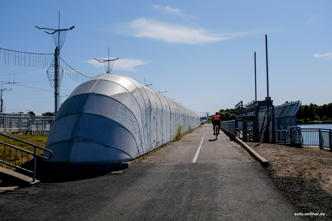 Наша задумка — проехать вдоль Слепянской водной системы до Чижовского водохранилища. Главная минская велодорожка тянется по берегу Свислочи от Дроздов, там уложено качественное асфальтированное покрытие, нанесена разметка, что, впрочем, не делает этот маршрут зоной, свободной от конфликтов.