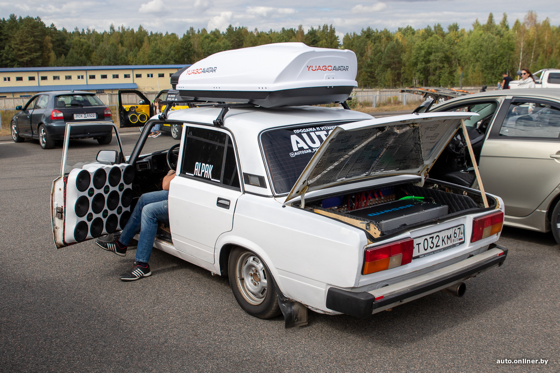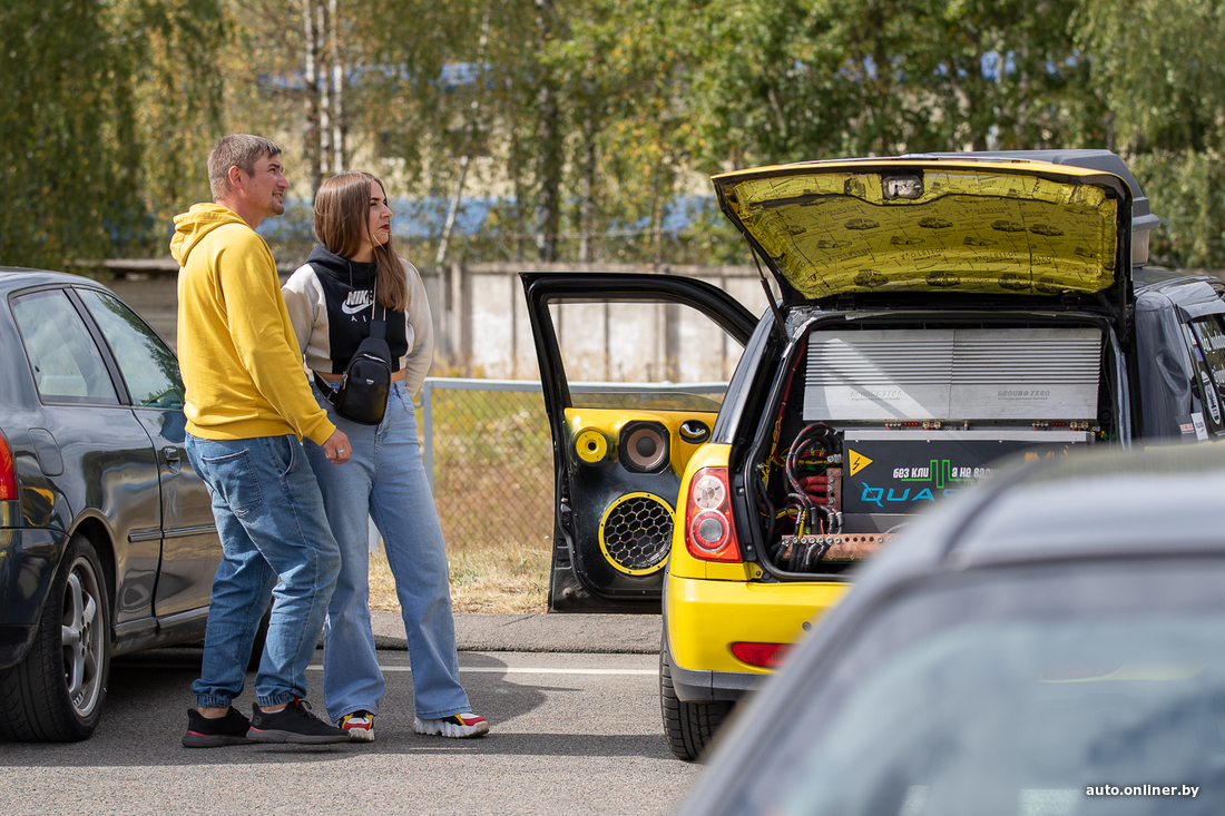 Параллельно с быстрыми заездами прошла тусовка любителей громкой музыки. «Белорусская лига автозвука» провела конкурс в двух номинациях — SPL (измеряется пиковое звуковое давление внутри салона автомобиля) и Streat Beat (категория, в которой участники проверяют аудиосистемы на живучесть).