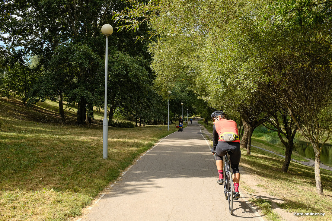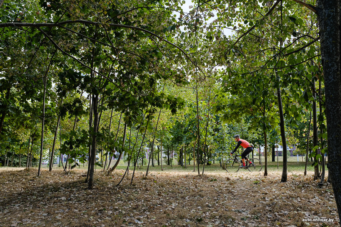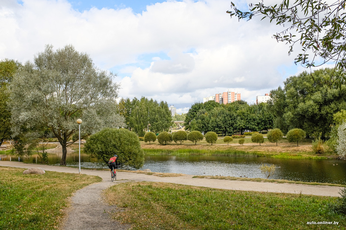 В городе наступает, возможно, самое красивое время года. Зелень сменяется золотом, медью, огненным красным. Выжженную летним солнцем траву накроет богатейший ковер опавших листьев. Похолодало даже слишком быстро: осень в этот раз строго по расписанию. Мы спешим, мы бежим за последним вагоном уходящего лета, без надежды успеть в него заскочить. Пусть так, но эта погоня все равно не лишена смысла. Садимся на велосипед, чтобы показать еще один живописный городской маршрут, который весь сентябрь, до самых дождей, будет становиться лишь краше. Здесь мы еще не были, таким Минск еще не видели.